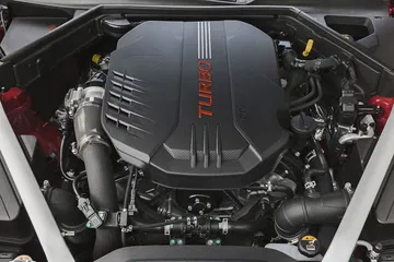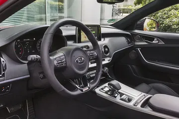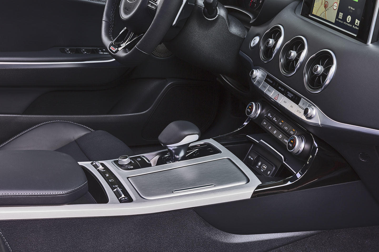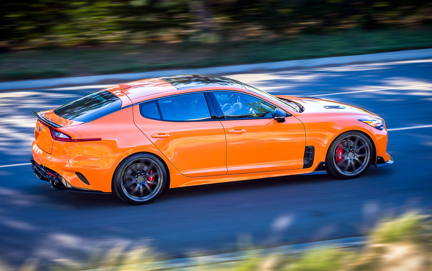 El KIA Stinger GT que vemos en naranja en estas imágenes ha recibido diferentes accesorios, que van desde los eminentemente estéticos, como un spoiler trasero, un difusor, o nuevas entradas de aire en el capó, hasta los más funcionales, que pasan por nueva admisión, nuevo sistema de escape y otras mejoras que incrementan su potencia en 15 CV. Suficiente para que el kIA Stinger GT, con su motor de seis cilindros en uve, alcance unos más que respetables 385 CV de potencia.