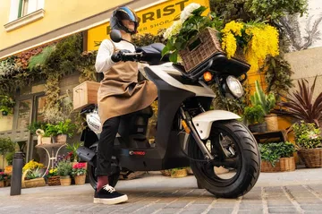 Pensada para el transporte de pequeños objetos, comidas o cualquier cosa que no tenga unas dimensiones importantes, este ciclomotor resulta ágil, práctico y ligero. Se puede elegir en dos colores (blanco o negro) y durante este mes es posible adquirirlo por tan solo 1.899 € ya con todos los impuestos incluidos.