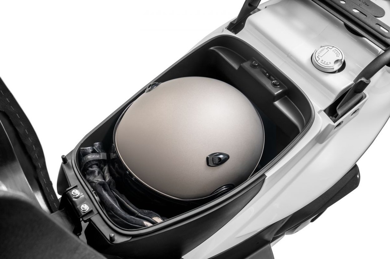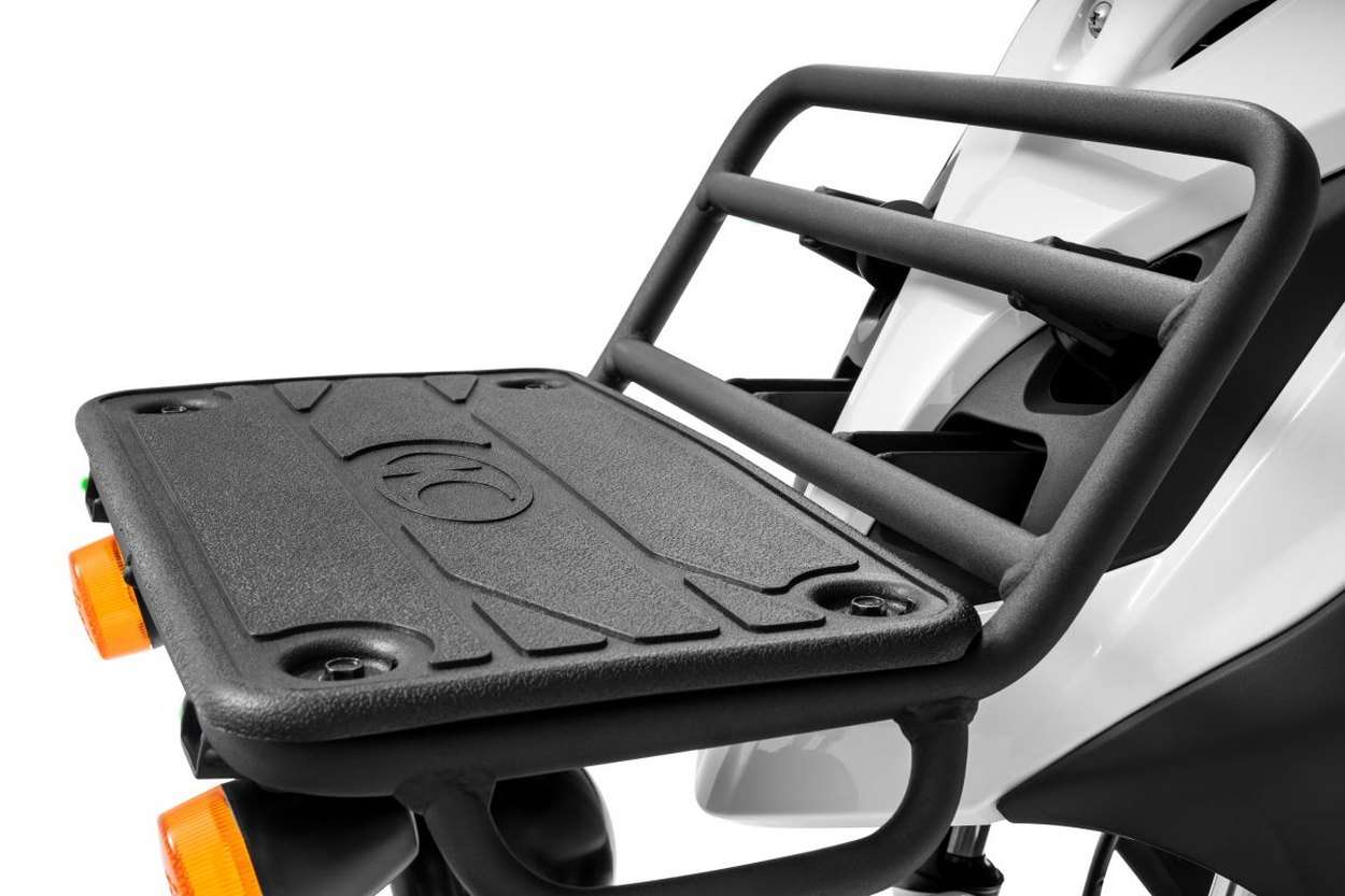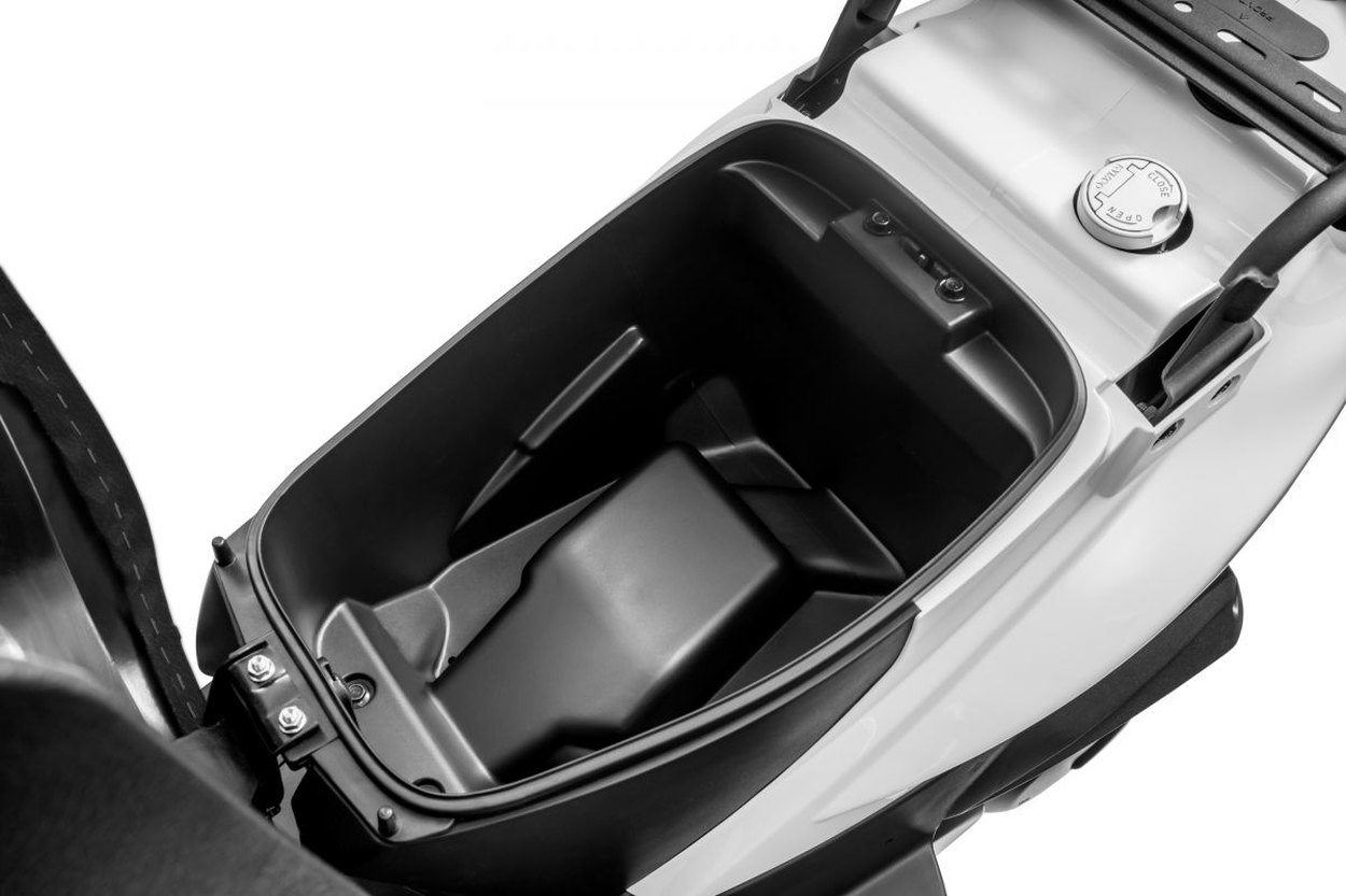 Como es un ciclomotor la velocidad máxima está limitada a 45 km/h y se puede conducir con licencia, algo que sí le da cierta ventaja frente a los scooters de carga de 125 cc. De serie cuenta con dos parrillas muy bien integradas, una frontal que admite hasta 5 kg de peso y otra trasera que aguanta nada menos que 20 kg.