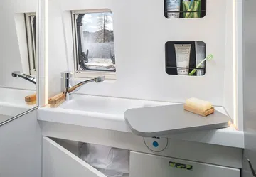 La zona del baño por su parte cuenta con ducha «Spa» separada con lluvia doble y regulación en altura. Si se cierra la puerta del baño se queda una zona única con vestidor que añade mucha intimidad. Espejos, iluminación LED y una terminación muy agradable redondean un conjunto cómoda, versátil y funcional.