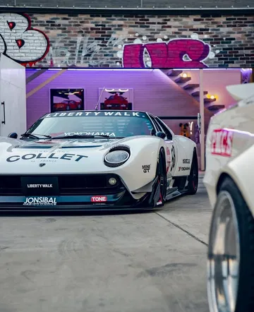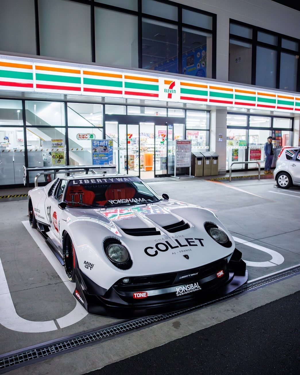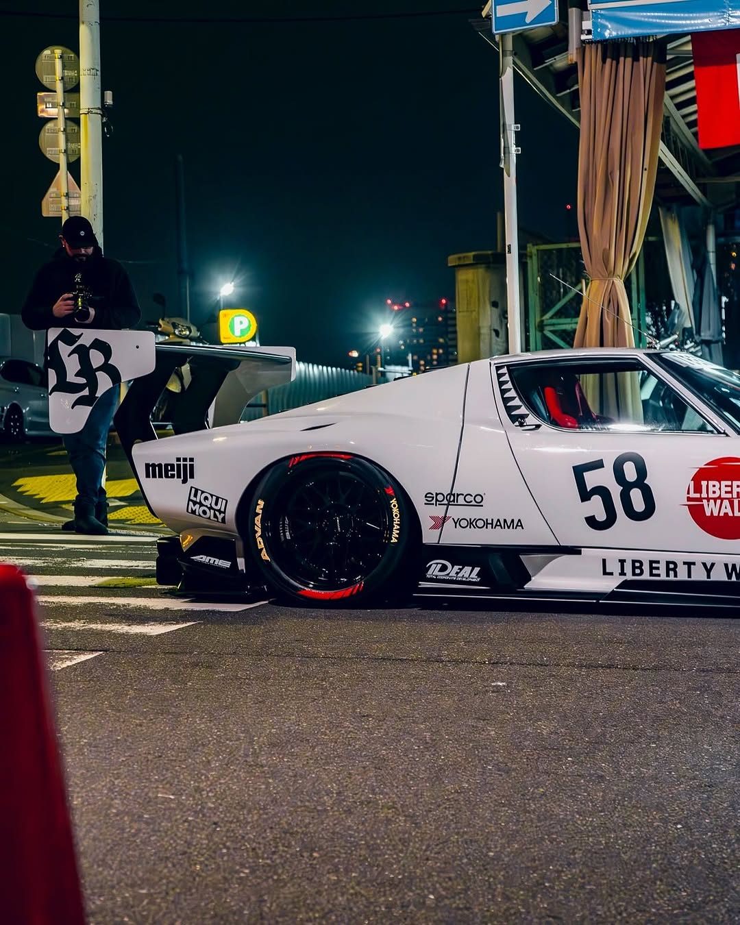 Tantas cosas y, sorprendentemente, todo encaja. Al contrario que otros kits de carrocería de Liberty Walk, este se integra con las líneas del miura casi a la perfección, en lugar de ir en su contra. Esto fue gracias al artista digital Jonsibal, que tubo un papel clave en el diseño, asegurando una buena consonancia con en el coche.