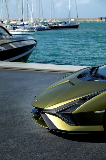 Todo el diseño, dicho sea de paso, es personalizable a través del programa Ad Personam de Lamborghini, el mismo que personaliza los supercoches de la marca de Santa Ágata. El yate equipa un hardtop que protege al piloto de los elementos, y su diseño, al igual que el puesto de pilotaje, se ha inspirado en el interior del Sián. La instrumentación del yate es digital – presenta las mismas grafías y las mismas animaciones que las de un coche – y tanto el volante como los dos asientos deportivos de fibra de carbono son calcados a los del superdeportivo.