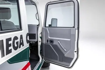 La solución desarrollada por la marca era una caja de zapatos de 2×2 metros de ancho y alto, con más de 5m de largo. Motor turbodiésel de 4 litros irrompible, ejes tipo pórtico, tracción y dirección a las 4 ruedas y unas cotas todoterreno brillantes.