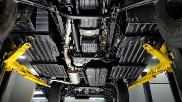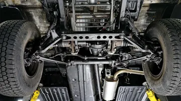 El chasis es de largueros y travesaños y cuenta con suspensión independiente en lugar de ejes rígidos. Su caja de cambios es de convertidor de par, con 4 velocidades, reductora y 3 diferenciales bloqueables.