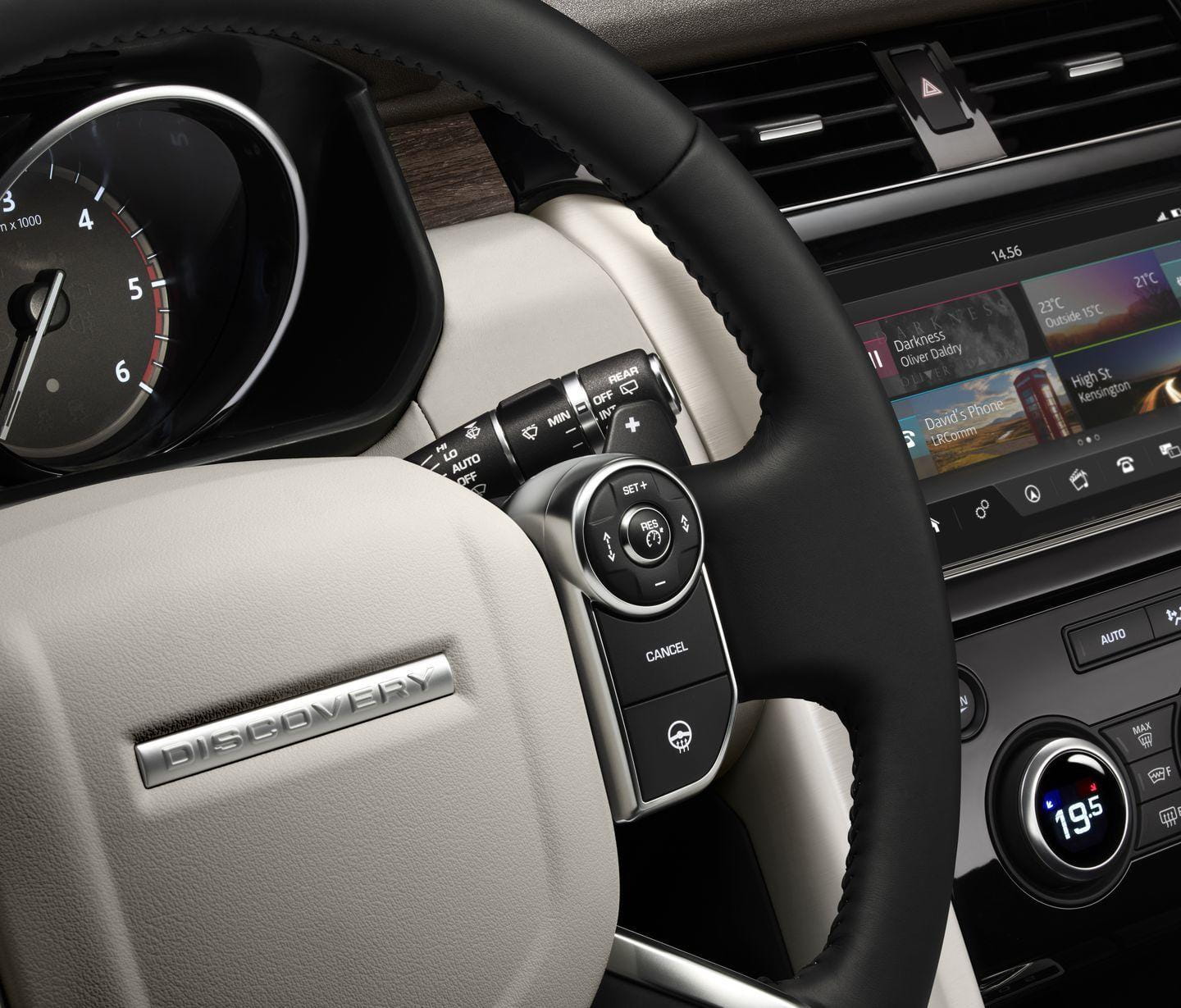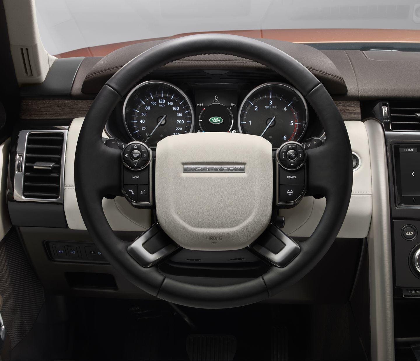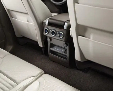 Su habitáculo ha sido una de las zonas más trabajadas por la marca británica. Puede albergar cómodamente a 7 adultos, que entran con facilidad gracias a la función de arrodillamiento de la suspensión de aire del Land Rover Discovery, que reduce en 40 mm la altura del coche al suelo. En el interior, los pasajeros disponen de nueve tomas USB, seis tomas de corriente de 12 voltios y espacio para almacenar cuatro tablets de gran tamaño. Se acabaron las peleas por el cargador entre los niños, definitivamente.