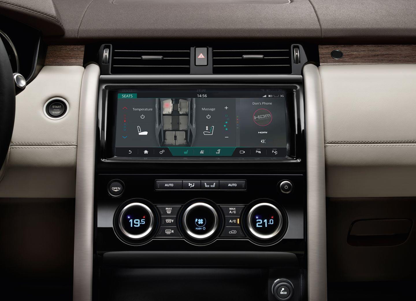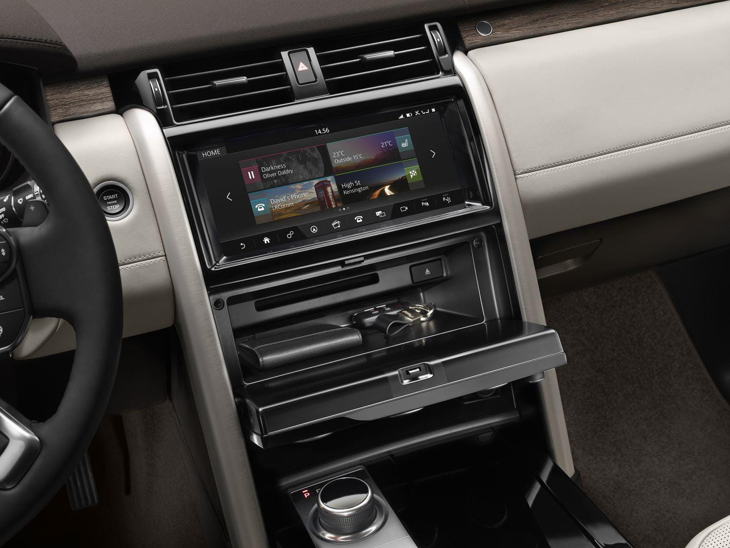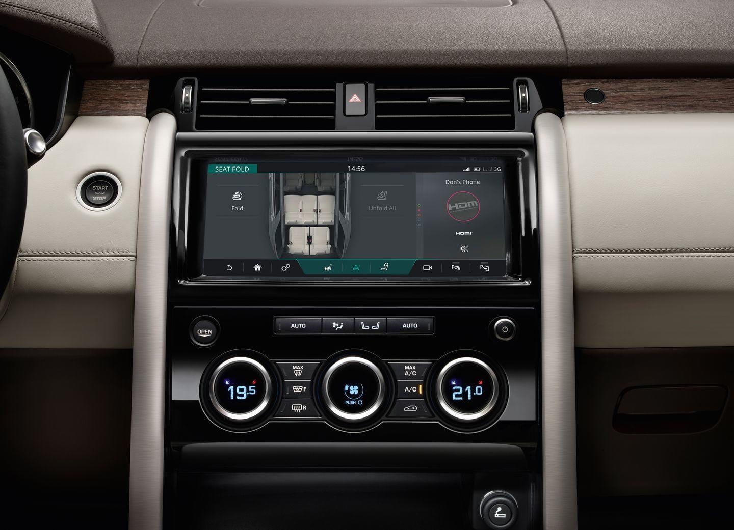 Posee un hotspot WiFi al que es posible conectar hasta 8 dispositivos y la integración con Android e iOS es completa gracias al sistema InTouch Pro de infoentretenimiento, que pronto detallaremos en otro artículo. La Activity Key que estrenase el Jaguar F-PACE también estará disponible en el Land Rover Discovery. El interior posee un aspecto premium, y en las imágenes se puede comprobar. Un diseño similar al de los Range Rover, con materiales de alta calidad, asientos de cuero y enormes posibilidades de personalización.