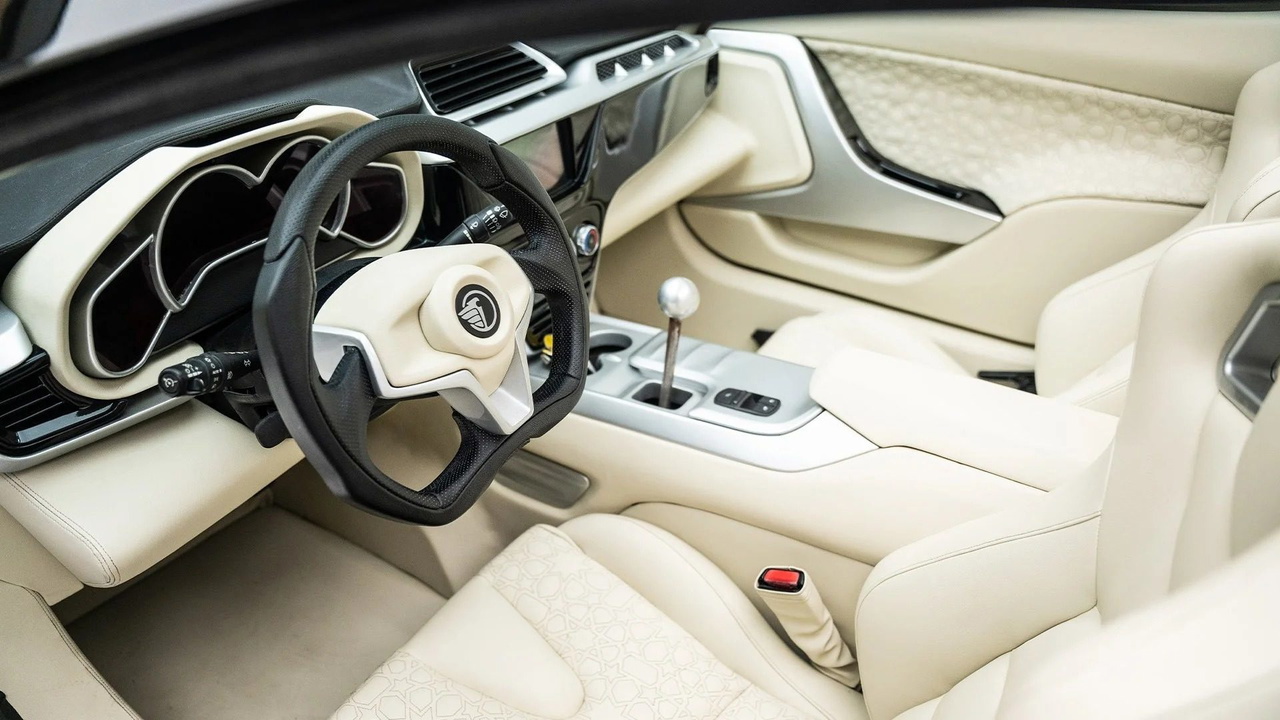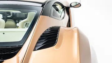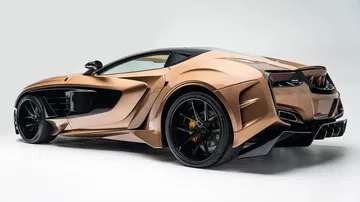 Su zaga es muy recargada, y es quizá la parte del coche más peculiar. El interior del coche es muy lujoso, y está repleto de fibra de carbono y cuero de color blanco. De nuevo, los motivos tradicionales se repiten en la tapicería y los pespuntes. Solo existen dos unidades, y las dos son propiedad del rey Mohammed VI. Se cree que cada una ha tenido un coste de dos millones de euros. Esta unidad está expuesta desde hace tiempo en el Petersen Automotive Museum de Los Angeles, donde pude grabar el vídeo que os dejo sobre estas líneas.