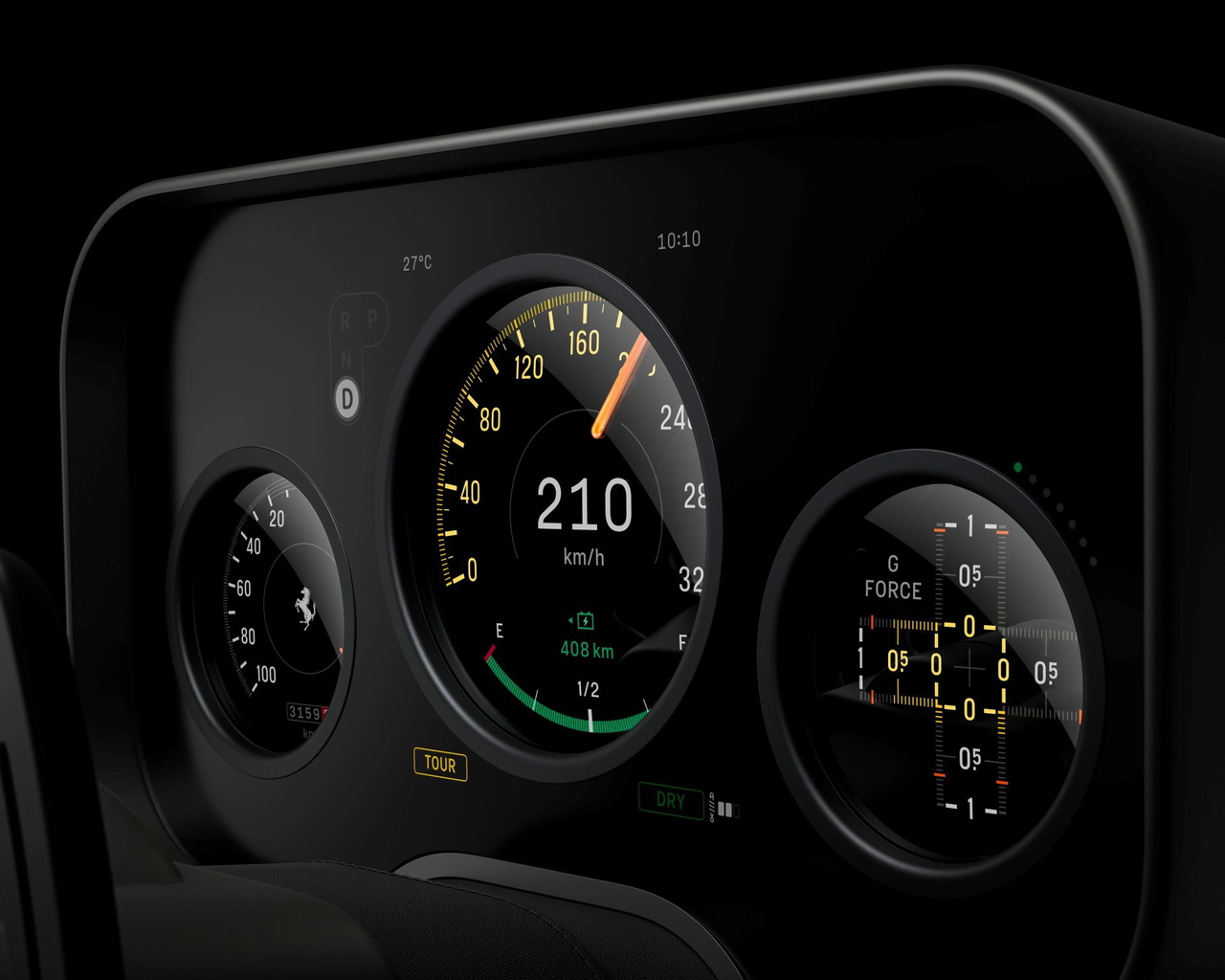 Pero la joya de la corona la encontramos tras el volante, pues ahí Ferrari ha fusionado diales digitales con agujas analógicas, consiguiendo así dar vida a un tableto al más puro estilo Ferrari F40 para conocer los valores de velocidad, potencia o autonomía. Visualmente estamos ante un esquema que recupera la configuración de relojes de un Ferrari de los ’80, pero tecnológicamente estamos ante un trabajo que aporta identidad y diferenciación.