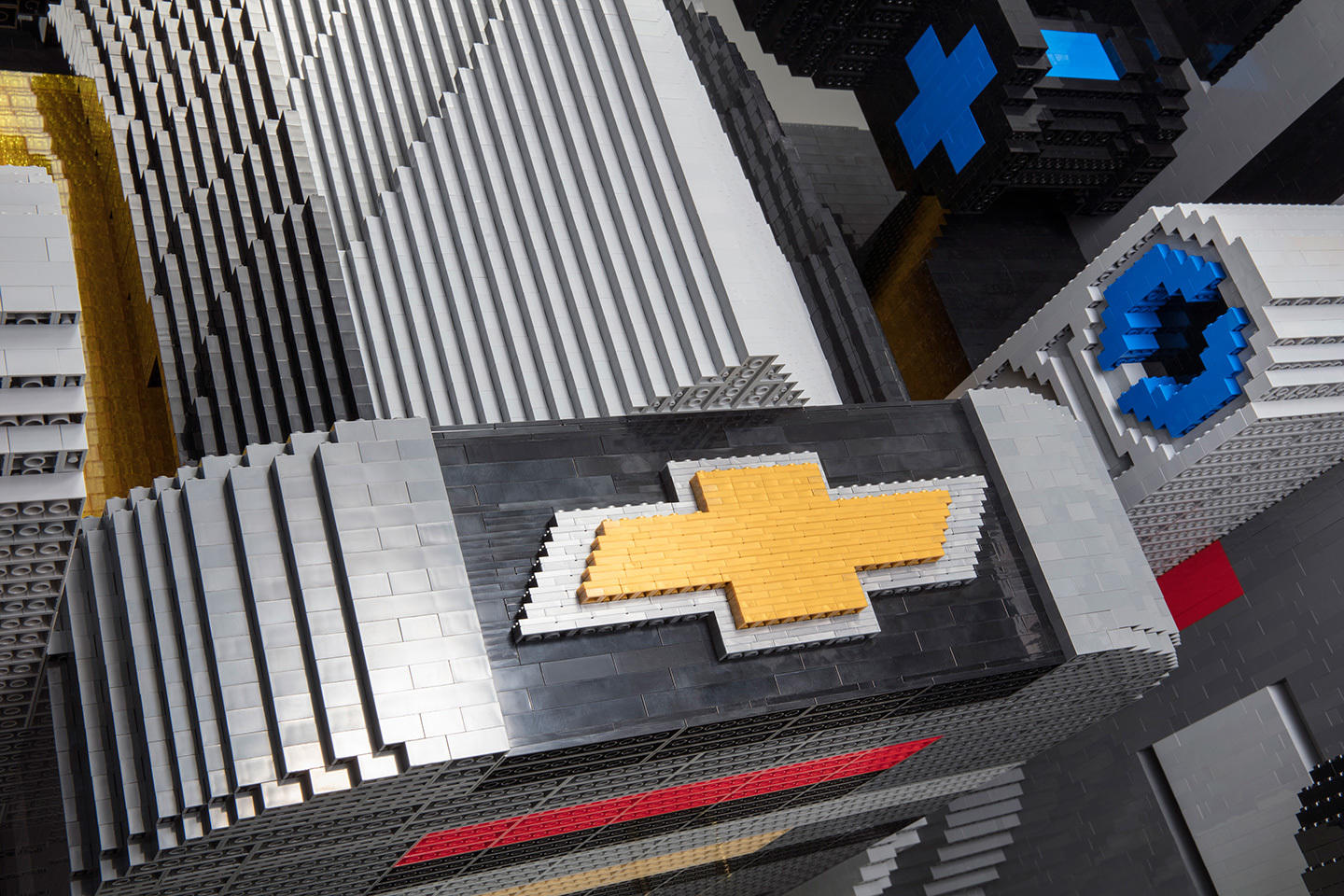 Según Chevrolet, se requirieron 222 horas para diseñar esta obra de arte y otras 1.833 horas de trabajo para ensamblarla. Se ha empleado un chasis de aluminio interno para dar consistencia a la pieza y los ya mencionados 344.187 bloques de LEGO, de 17 colores diferentes.