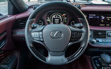 La marca ha conseguido enmascarar el clásico comportamiento de un cambio CVT, que solo sale a relucir cuando exigimos la máxima potencia al sistema, en el modo de conducción Sport+. El motor parece estar girando a su régimen máximo casi todo el tiempo, con breves caídas de régimen, fruto de la «simulación» de marchas del variador. En cualquier caso, el Lexus LS no es un coche deportivo ni pretende serlo. Su masa y sus inercias no invitan a una conducción agresiva, pese a equipar de serie un sistema de cuatro ruedas directrices y tener la posibilidad de equipar un sistema opcional de tracción total permanente.