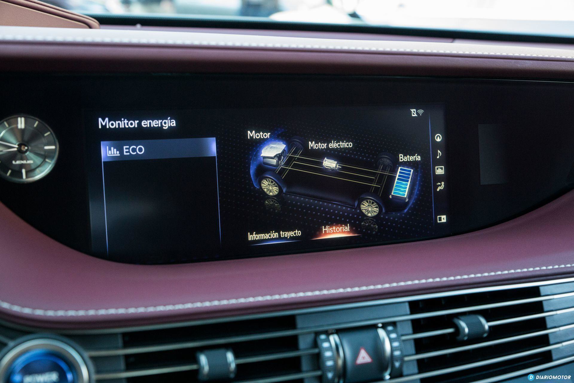 No obstante, es muy diferente. Lexus lo bautiza como Multi-Stage Hybrid, y lo equipa también en el Lexus LC 500h, otro de sus buques insignia. Buscando una mejor eficiencia y una experiencia de conducción más natural, han “acoplado” un convertidor de par de cuatro relaciones a una caja de cambios de variador continuo, dando como resultado un cambio de 10 relaciones – te explicamos su funcionamiento al detalle en este artículo a fondo. La realidad es que el sistema tiene un comportamiento natural, especialmente en una conducción tranquila.