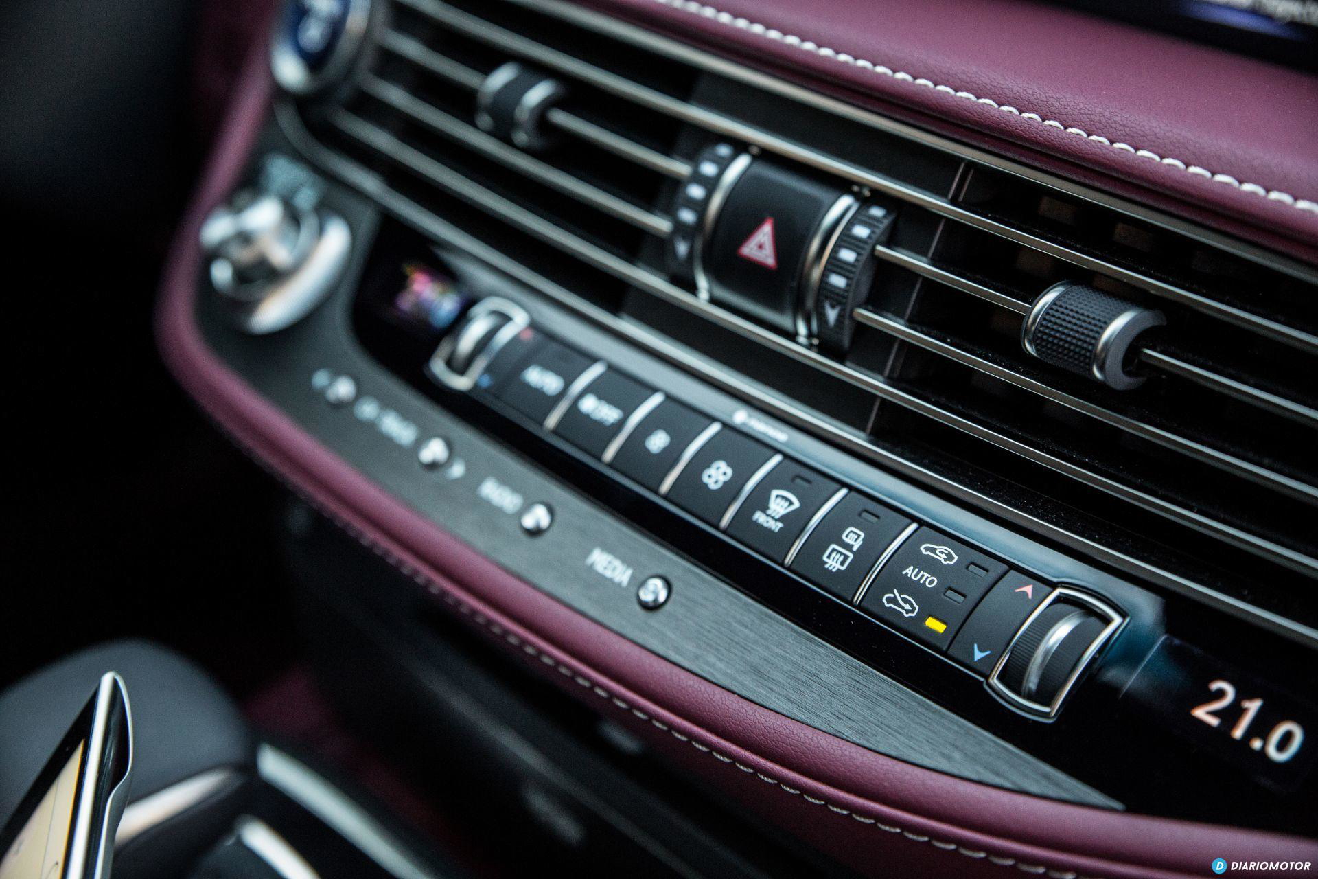 Paso a ocupar el asiento trasero, mientras un chófer local me traslada al hotel. Aunque nos encante conducir, he de decir que el viaje en sus asientos traseros fue absolutamente maravilloso. Las plazas traseras laterales – tiene cinco plazas, pero dudo que la plaza central se use en algún momento – tienen 18 ajustes eléctricos y además son reclinables. Si viajamos detrás el asiento del copiloto y no hay nadie en él sentado, podemos prácticamente viajar tumbados, estirando al completo nuestras piernas – el asiento delantero del acompañante se reclinará hacia delante para dejarnos más espacio.
