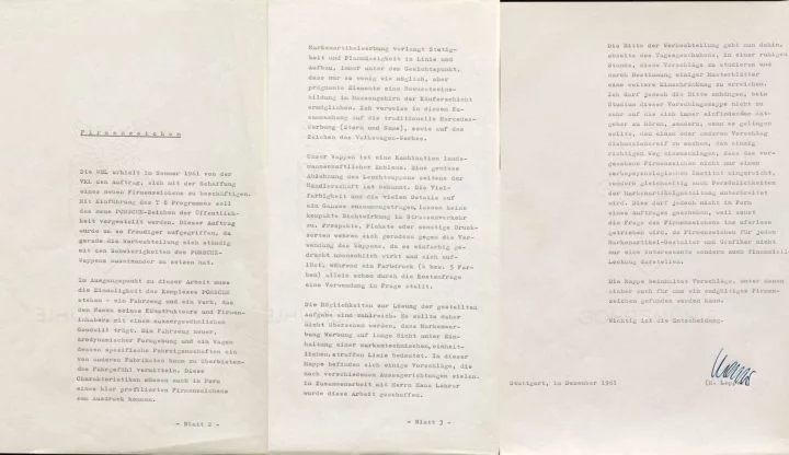 En su misiva, citaron los logotipos de Mercedes y Porsche como ejemplos a seguir, diseñados por el propio Reimspiess – el mismo que había diseñado el escudo de Porsche. Tras recibir esta carta, la directiva de la marca contrató al creativo Hans Lohrer para diseñar varios logotipos alternativos para Porsche. Lohrer había creado pósters para Porsche durante los años 50 y era uno de los más reconocidos artistas de diseño comercial de la época. Creó cinco propuestas diferentes, centradas en el uso de la letra «P» como eje central.