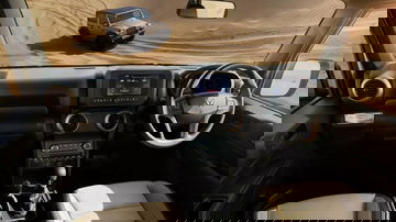 Para el interior se ha apostado por una vuelta de tuerca al espartano habitáculo del Thar, usando piel sintética en color beige y negro para tapizar los asientos, embellecedores en color arena para los aireadores y la parte inferior del volante e instalando una placa identificativa en el salpicadero aludiendo a la serie especial Earth Edition.