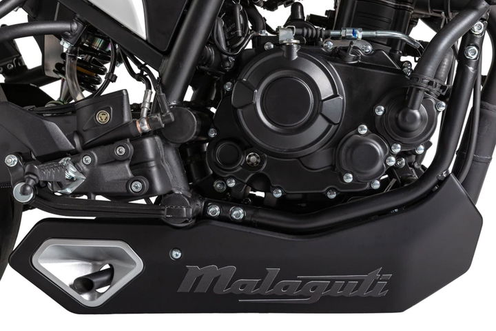 La motorización elegida para mover a la Malaguti Drakon es un monocilíndrico de 124,9 centímetros cúbicos con inyección electrónica, refrigeración líquida y cuatro válvulas que desarrolla 13,4 CV de potencia a 9.500 rpm y un par máximo de 11,4 Nm a 7.500 rpm. Pesa solo 145 kg en orden de marcha, una cifra baja.