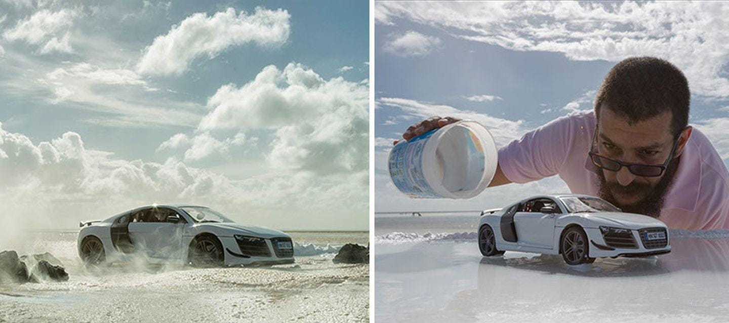 Según informa Petapixel, Audi habría contratado a Félix para una sesión fotográfica del Audi R8. En vez de cederle un Audi R8, prefirieron dejarle hacer lo que mejor sabe. Félix Hernández, mexicano, ha criado una gran reputación con lo que él denomina como «Dream Phography». Usando miniaturas y dioramas a pequeña escala, puede recrear todo tipo de escenas y localizaciones desde el confort y la comodidad de su estudio. No es una técnica novedosa ni ha sido el primero en usarla, pero el resultado es francamente espectacular.