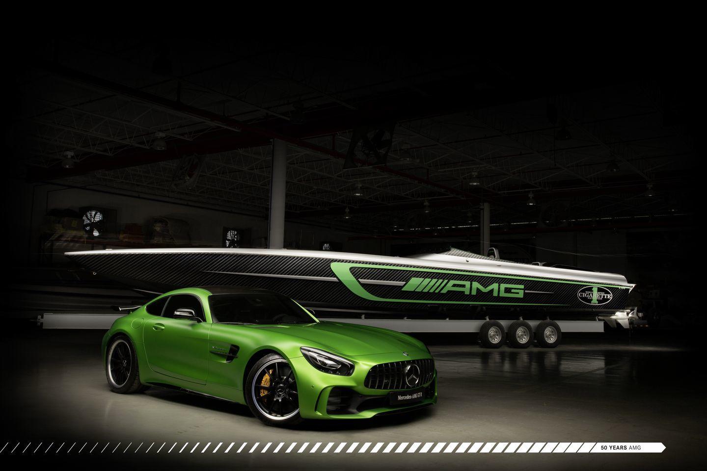 No hay duda en que el Mercedes-AMG GT R es uno de los más rápidos superdeportivos del momento. Gracias a sus 585 CV de potencia y un tren de rodaje revisado, además de una aerodinámica activa, ha sido capaz de dar una vuelta al mítico Nürburgring Nordschleife en 7:10,92. Un tiempo espectacular, cercano al de un Nissan GT-R NISMO o un Lamborghini Aventador SV. Para celebrar 10 años de colaboración entre Cigarette Racing y Mercedes-AMG, se acaba de presentar en Miami esta impresionante motora rápida de 15 metros de eslora y 3.100 CV de potencia. Es el nuevo Cigarette Racing Team 50’ Marauder AMG.