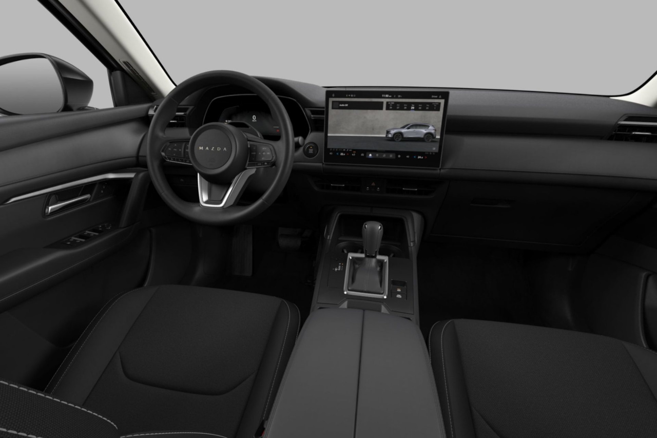 En términos de equipamiento, aunque es cierto que esta oferta se articula en torno a la variante más sencilla, el CX-5 no deja de tener elementos que no cabe echar en falta en un coche de su tamaño, enfoque y precio. A descatar, encontramos un cuadro de mandos digital de 10,25 pulgadas, una pantalla central de 12,9 pulgadas (cuyo sistema tiene Google integrado pero se ha de conectar mediante cable con Android Auto y Apple CarPlay, eso sí), sensores de aparcamiento delanteros y traseros, sistema de sonido de 8 altavoces, faros de LED con función automática de largo alcance y el ya habitual despliegue de sistemas de seguridad.
