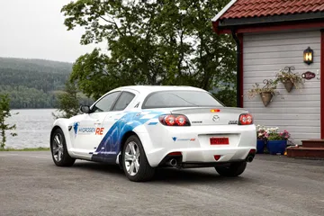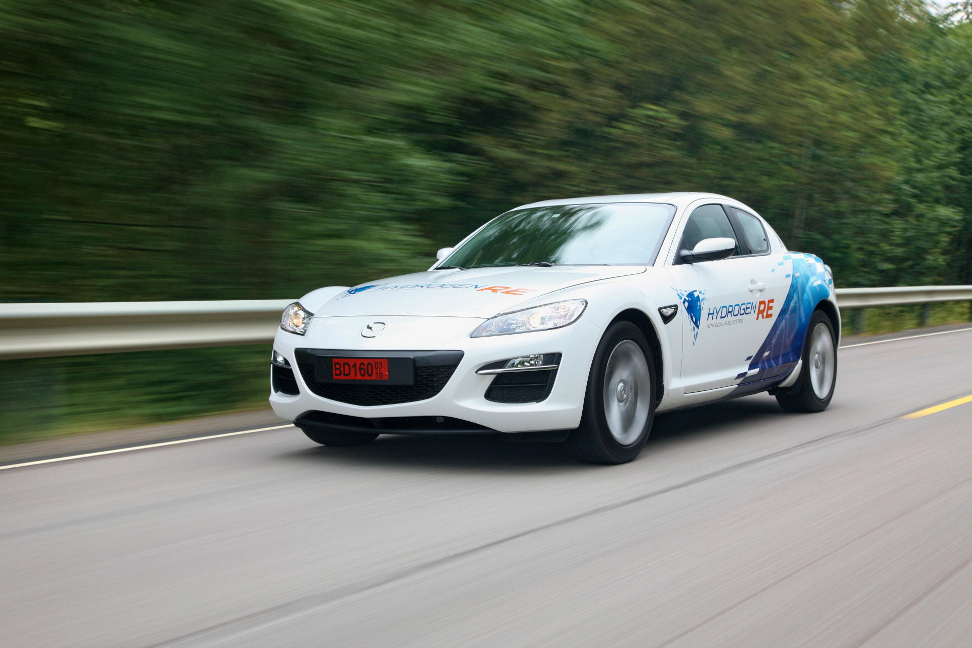 Hablar de hidrógeno y Mazda nos debería llevar a pensar, antes que en este Mazda MX-5, en un Mazda RX-8 que en 2006 se presentaba dándonos la posibilidad de elegir si queríamos que nuestro rotativo funcionara con gasolina o con hidrógeno proponiéndonos una potencia de 210 caballos en el primer caso y de 110 caballos en el segundo. Este modelo no llegó tampoco a producción pero sí que gozó de una visibilidad mediática mayor que la del Mazda MX-5 de hidrógeno y además estuvo acompañado por una versión de hidrógeno del Mazda Primacy (Mazda5).