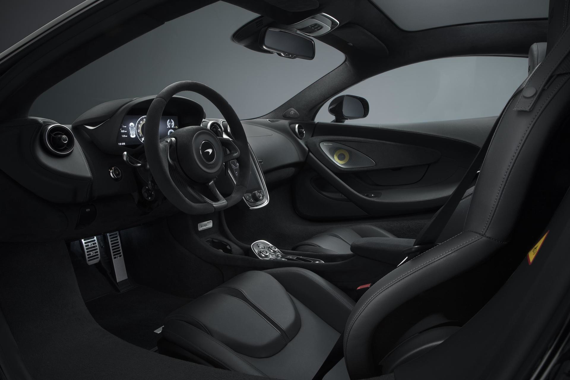 Además del toque negro McLaren ha querido ensalzar el lado más prestacional de este deportivo y nos propone como dotación de serie un sistema de escape de titanio que reduce el peso del coche en 5k kg al mismo tiempo que ganamos un sonido de escape 5dB superior, así como un sistema de frenos carbocerámicos que ya hemos mentado. La guinda del pastel llega con un paquete GT que incorpora un equipo de sonido Bowers & Wilkins de 12 altavoces, para cuando nos cansemos del estruendo del sistema de escape, así como la cámara de visión trasera y una columna de la dirección con ajuste eléctrico.