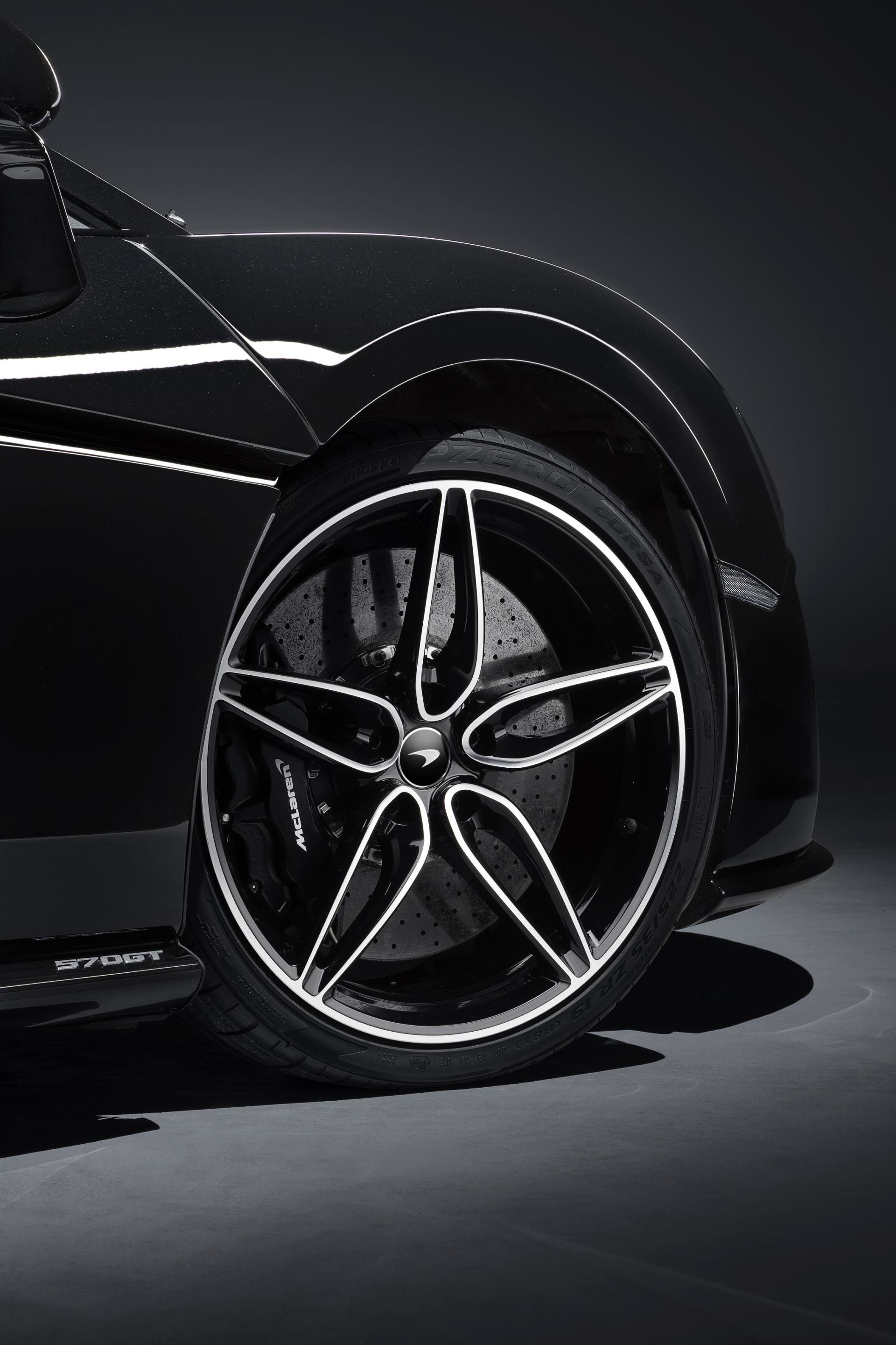 El McLaren 570GT Black Collection creado por MSO cuenta con una nueva pintura bautizada como “MSO Bespoke Carbon Black”, con un nuevo acabado negro ya no sólo para la carocería, sino también para las taloneras laterales, el splitter delantero y el difusor posterior, completando el conjunto unas nuevas llantas forjadas acabadas en negro. Incluso la pinza de freno, encargada de morder los frenos carbocerámicos del McLaren 570GT, también es negra.