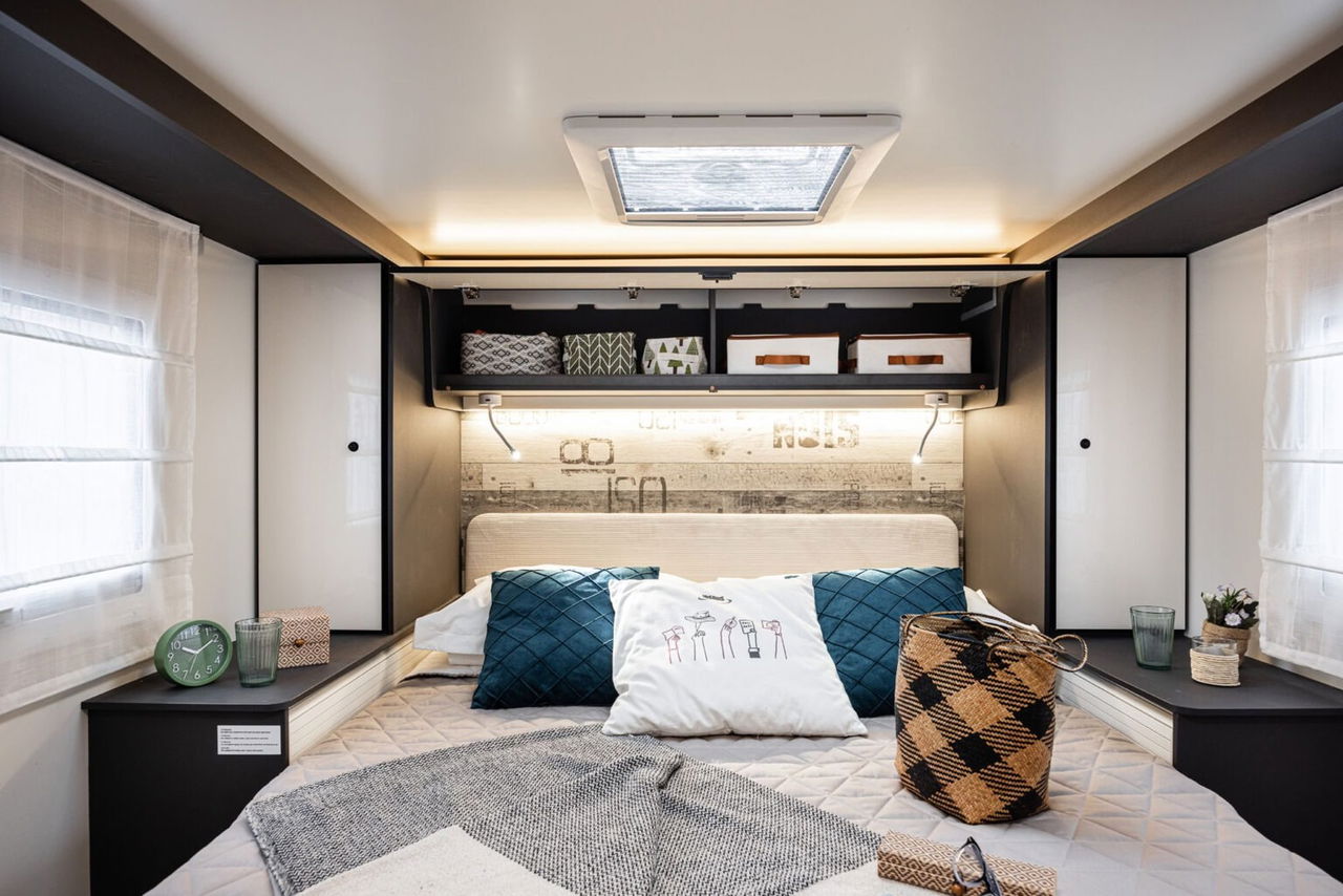 - Yearling 70: Cuenta con camas gemelas traseras de gran tamaño, armarios justo debajo y salón face-to-face para garantizar una mayor sensación de espacio. Además se incluye una cama basculante eléctrica sobre el salón para dos personas.