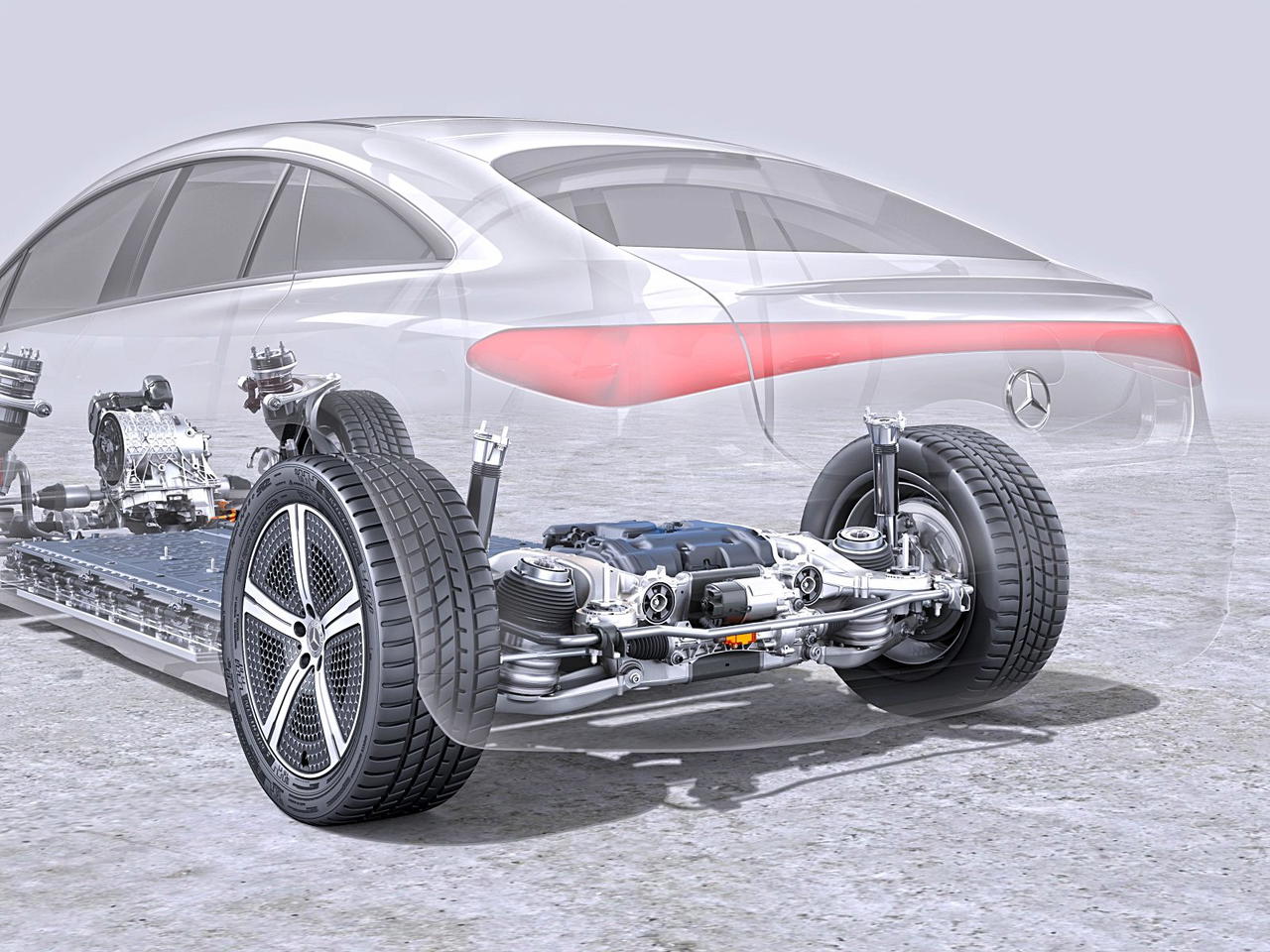 Una de las novedades más importantes es la nueva dirección por cable (steer-by-wire), es decir, sin conexión mecánica entre el volante y las ruedas. No es el primer coche del mundo con esta tecnología, pero sí es el primer coche alemán en llevarlo a producción. Mercedes estrena un volante tipo «yugo», al estilo Tesla o Lexus, que bajo nuestra experiencia es bastante incómodo, aunque se podrá elegir con un volante redondo normal. El sistema se combina con dirección en el eje trasero (las ruedas giran hasta 10º).