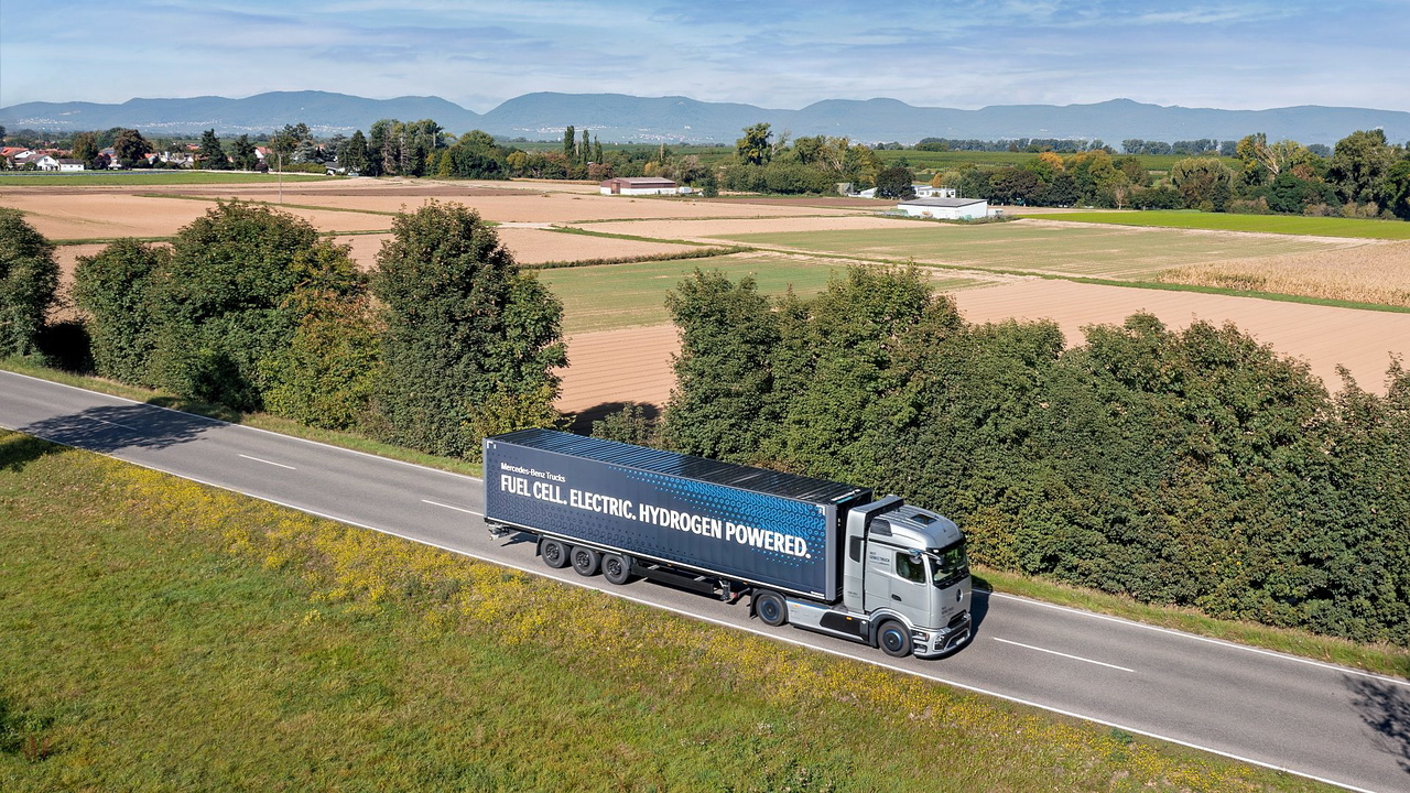Tras años de desarrollo y pruebas con prototipos, el camión de hidrógeno de Mercedes ya está listo para fabricarse, aunque con ciertas limitaciones, como veremos más adelante. Se trata de un camión perfeccionado hasta el extremo, con una aerodinámica excepcionalmente buena y una autonomía real de más de 1.000 kilómetros por depósito. Y como en todo vehículo de pila de combustible, por el tubo de escape sólo emite vapor de agua.