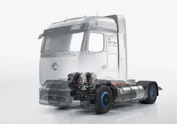 La batería alimenta los motores eléctricos integrados en el eje, que son los que mueven el camión. Ofrecen 300 kW continuos y hasta 370 kW de potencia máxima (503 CV) en Power Mode y 340 kW (462 CV) en modo Economy. La potencia se transmite al suelo a través de una transmisión de 4 velocidades (incluidas dos marchas atrás), igual que en el eActros 600 de batería.