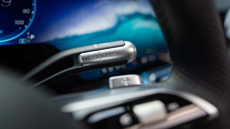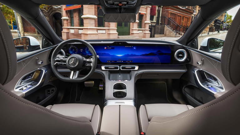 La silueta mantiene un formato de berlina, aunque deriva directamente del planteamiento del GLC eléctrico en lo que respecta a proporciones y superficies, dejando también entrever líneas que recuerdan a los EQE y ESA. A ello se suma un coeficiente aerodinámico de 0,22, claramente optimizado frente a soluciones SUV. Como elemento distintivo, el techo panorámico integra hasta 162 estrellas iluminadas, reforzando el componente tecnológico del conjunto.
