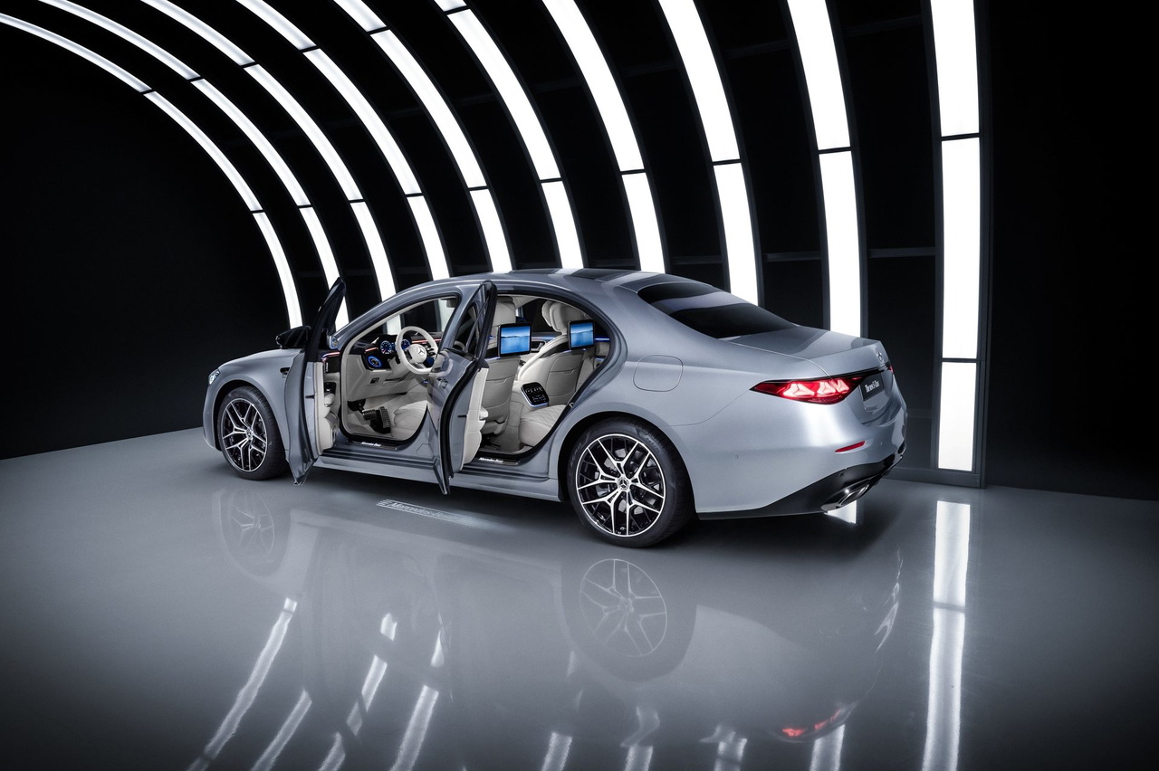 El sistema MB.DRIVE PARKING ASSIST amplía sus funciones con detección temprana de plazas a ambos lados de la calzada, aparcamiento en ángulo, reconocimiento de plazas sin líneas pintadas y asistencia para salir de una plaza tras haber aparcado manualmente. En China, además, estrena una función de marcha atrás que reproduce el recorrido previo, apoyada en una vista 360 grados mejorada.