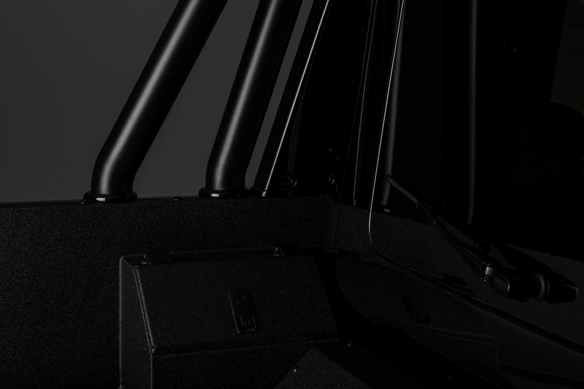 El trabajo de recarrozado es bastante profundo, pues para empezar se rediseña todo el conjunto técnico tomando como base un G de 3 puertas, se integra la capota de lona que cubre las plazas traseras y se instalan unas puertas traseras de apertura tipo «suicida».