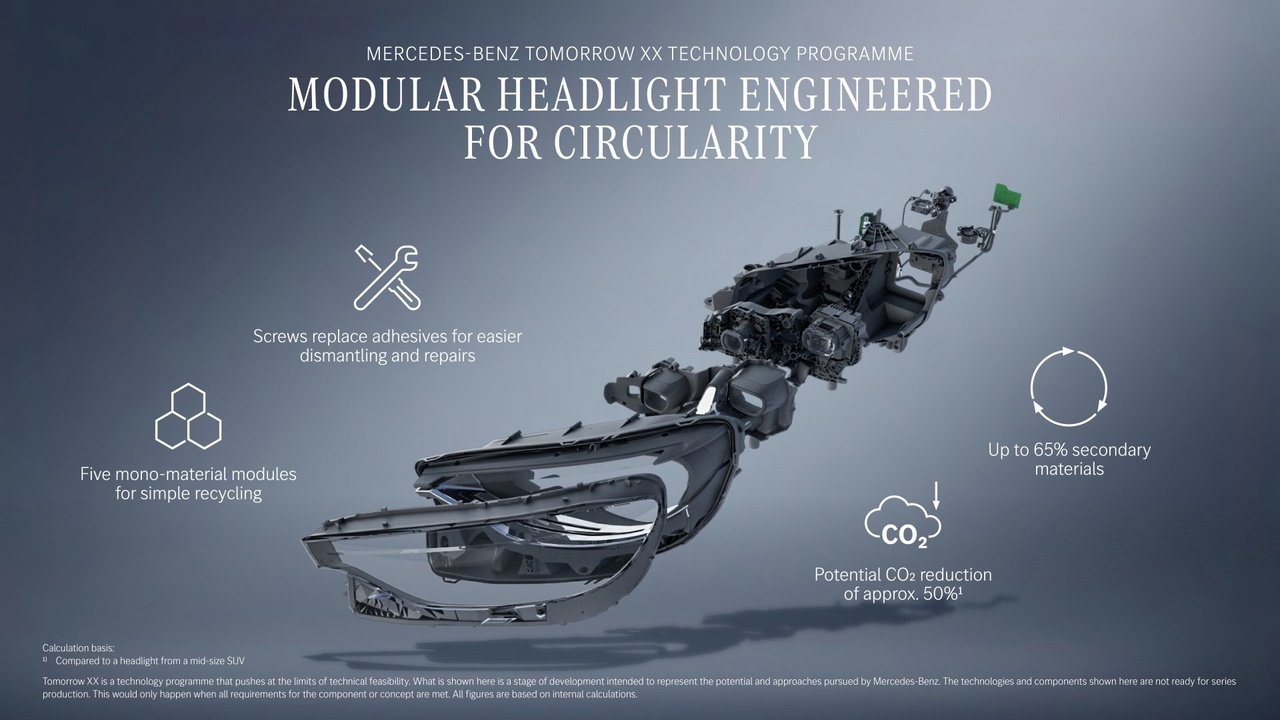 Es aquí donde entra en escena el nuevo programa Tomorrow XX de Mercedes-Benz, una iniciativa en donde el fabricante alemán se ha comprometido a hacer más sostenibles sus coches a través del uso de un mayor número de componentes reciclados y reciclables, reducir la huella de carbono en los materiales empleados y fomentar la reparabilidad de componentes tan cruciales como son los faros LED, algo que será posible gracias a medidas tan aparentemente sencillas como reemplazar el uso de adhesivo por tornillos en la unión de sus diferentes piezas.