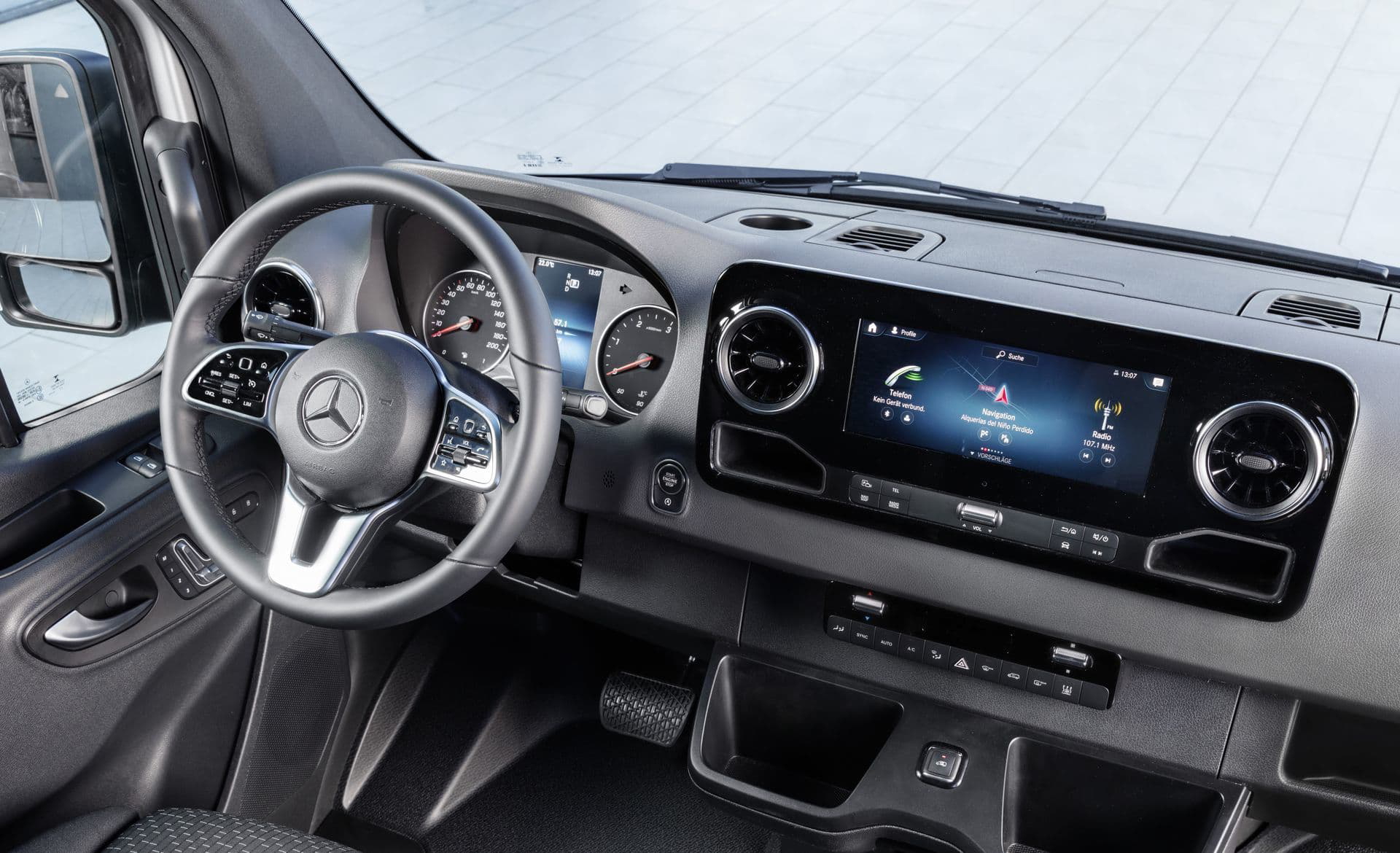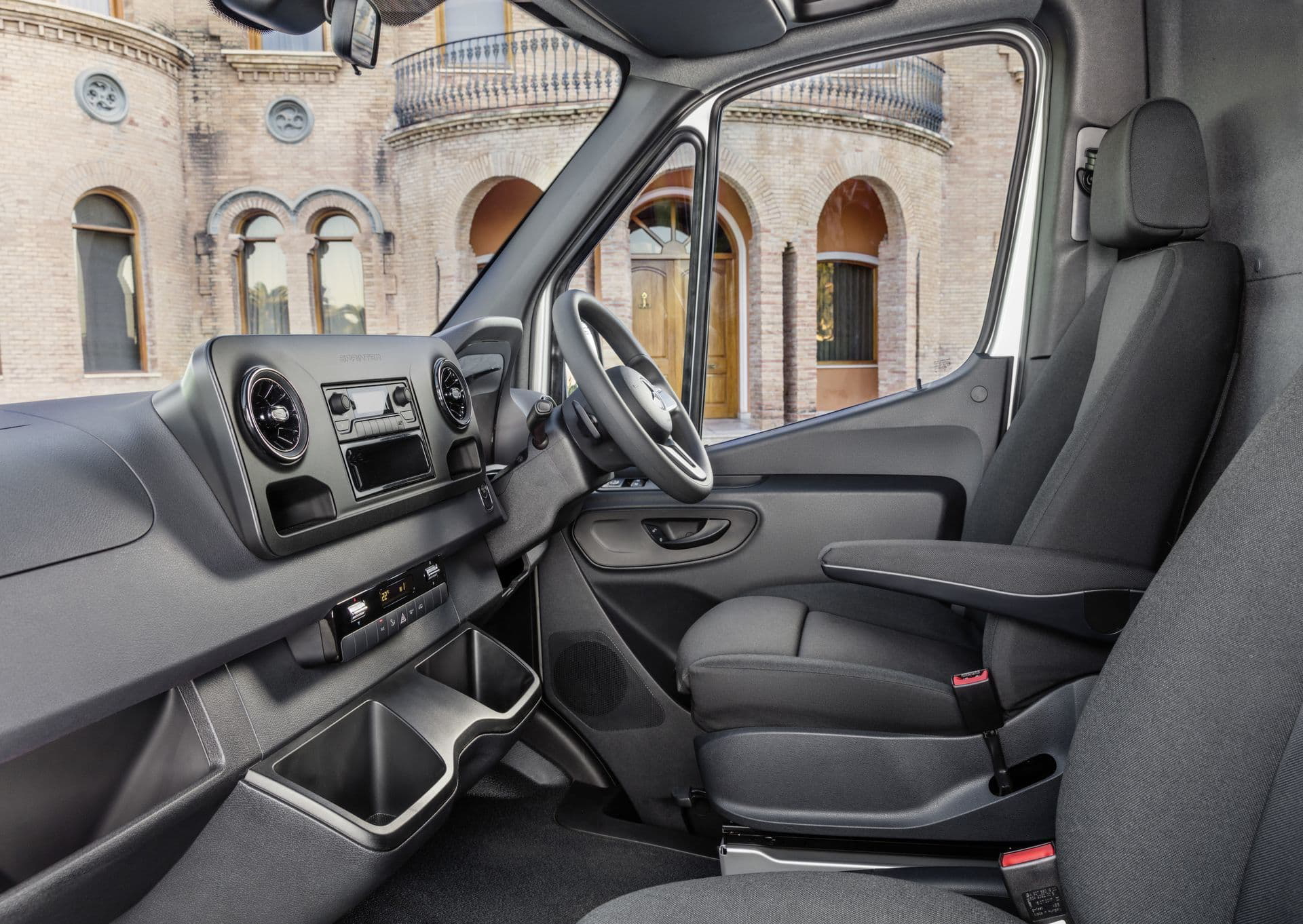 Las Mercedes Sprinter podrán tener una seguridad activa tan amplia como la de un turismo moderno. Entre otros asistentes, disfruta de un control de crucero adaptativo DISTRONIC, un sistema de frenado automático de emergencia, un asistente de mantenimiento de carril, un detector de vehículos en punto muerto o un asistente de atención del conductor, que nos avisará si es hora de tomarnos un café. Opcionalmente también puede equipar un sistema de ayuda al aparcamiento con cámaras de 360 grados. De serie equipa también un asistente de ayuda la conducción con fuertes vientos, especialmente útil a alta velocidad.