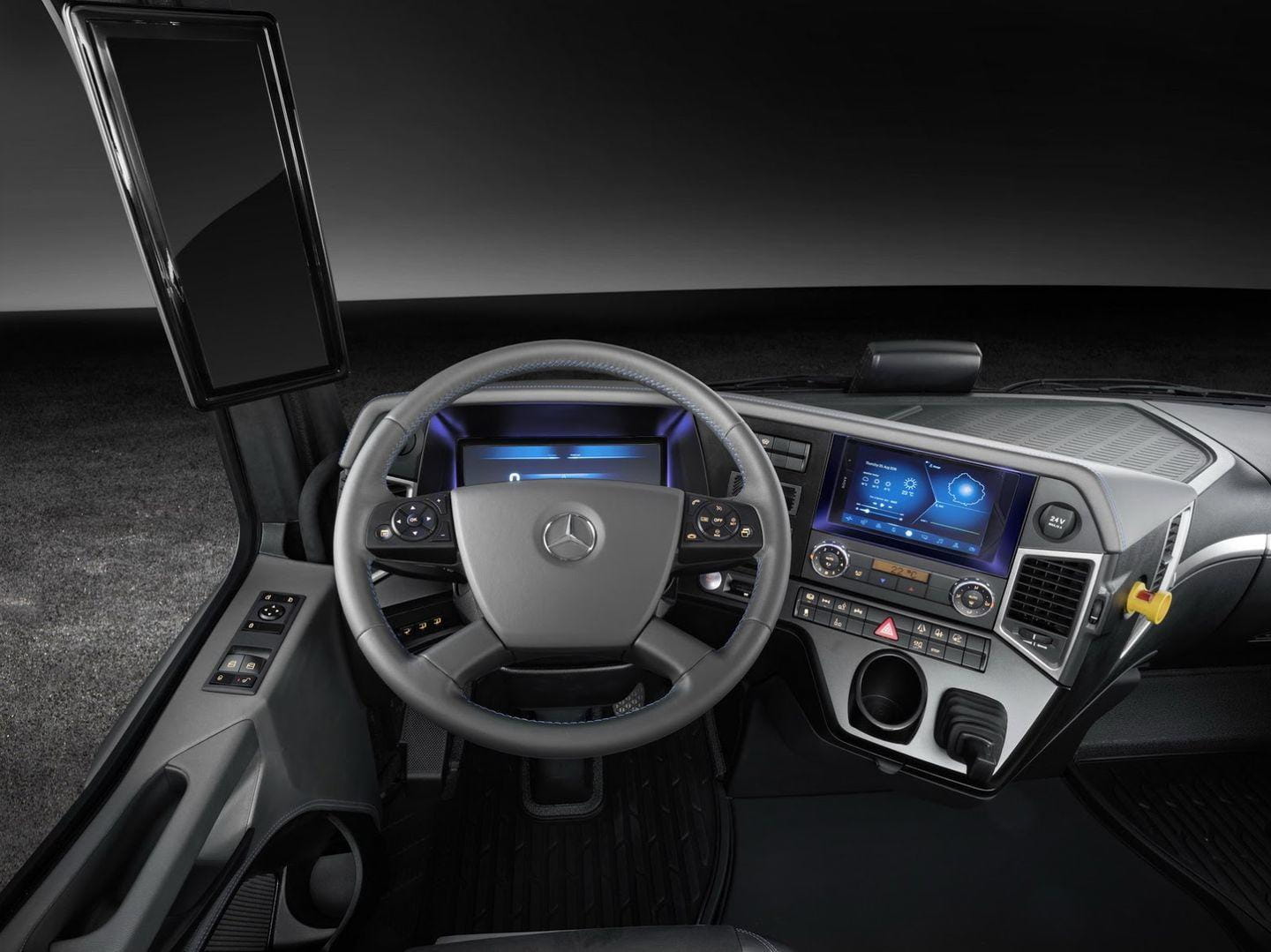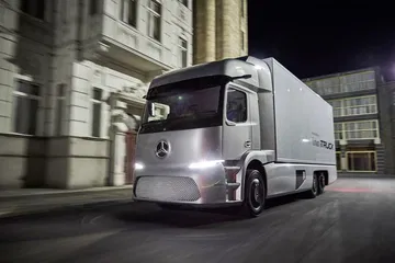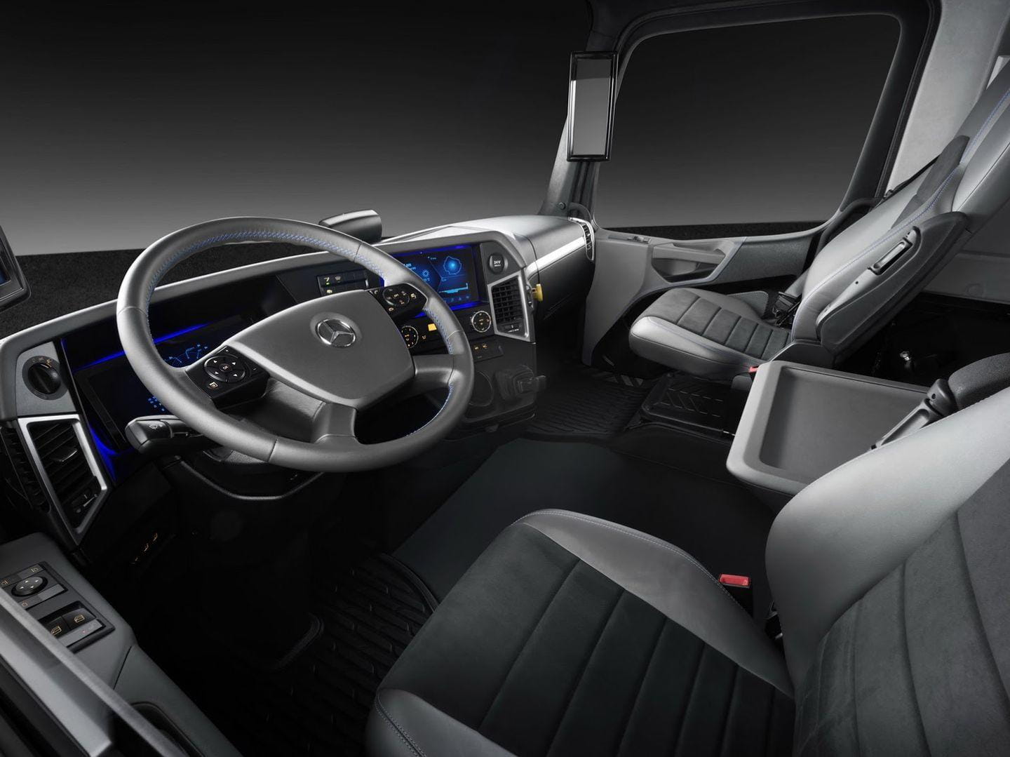 7. Un camión con tres modos de conducción. El Mercedes eTruck está disponible con tres modos de conducción: «Auto», «Agile» y «Eco». El último prioriza la autonomía del camión frente a las prestaciones puras del modo Agile. El modo automático regula automáticamente la entrega de potencia y par. Además, el Predictive Powertrain Control varía la velocidad y entrega de potencia en ruta, usando como fuente la información suministrada por el sistema GPS.