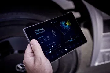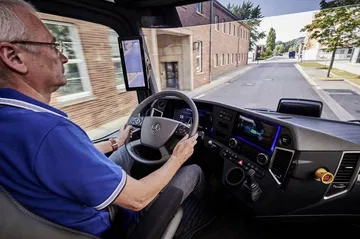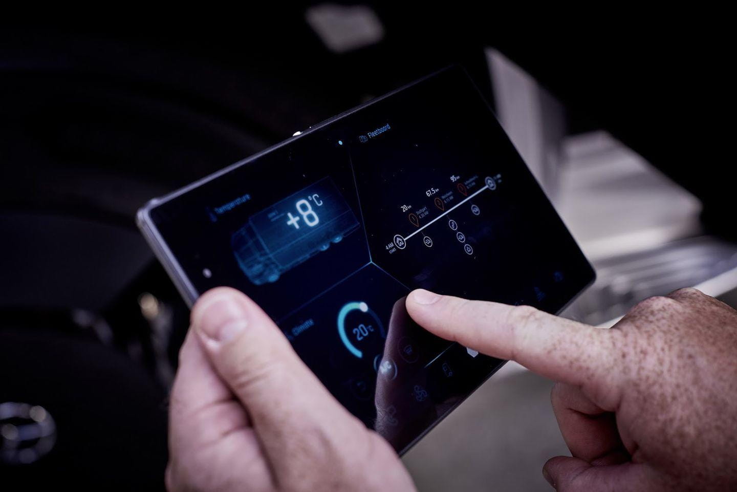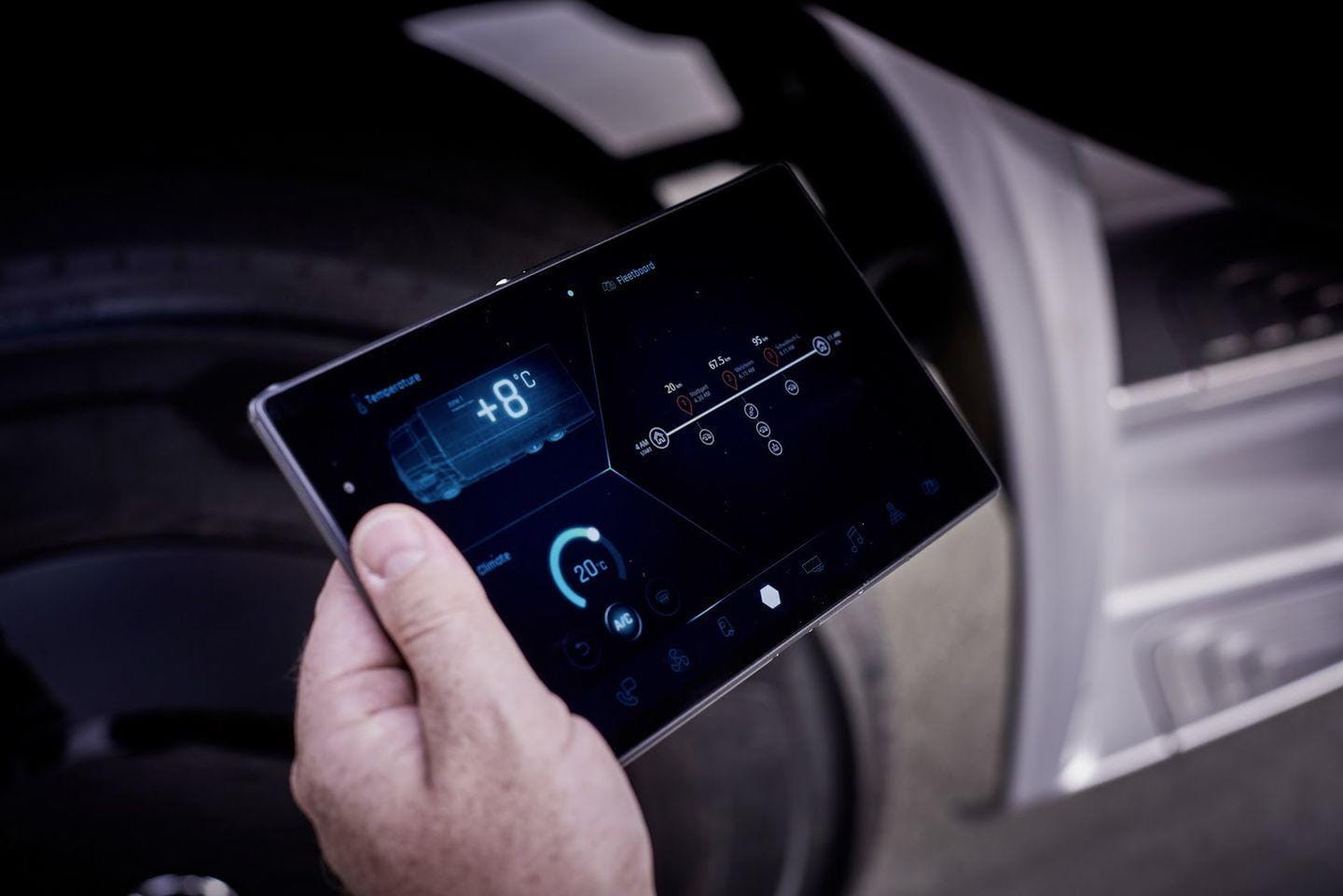 8. Un completo sistema de información. El sistema FleetBoard se integra en la instrumentación 100% digital del camión, así como en la tablet junto a él suministrada. Para el reparto organiza de forma flexible los itinerarios del camionero, en función de la carga o condiciones del tráfico. Además, ayuda al gestor de la flota a controlar en tiempo real la autonomía, número de pallets cargados y localización de sus camiones.