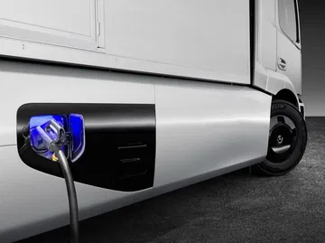6. Completamente cargado en 2-3 horas. Este camión puede recargarse rápidamente mediante corriente continua de hasta 100 kW de potencia. Usa el estándar europeo Combined Charging System (CCS) Type 2 y a máxima potencia, podría estar completamente recargado entre dos y tres horas. Para una flota de transporte, un camión parado está perdiendo dinero, por lo que un tiempo de recarga rápido es capital.