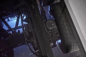 4. Dos motores eléctricos, integrados en el buje de las ruedas. Muy cercanos al suelo – reduciendo el centro de gravedad – y con una transmisión directa independiente. Cada uno de estos motores desarrolla 170 CV de potencia, para una potencia total de 340 CV, acompañada de un par de 1.000 Nm, constante desde las cero rpm. Sus motores eléctricos no posibilitan la doble rueda trasera en el eje motriz. Han sido reemplazadas por un neumático único de 495 mm de sección, montado en una llanta convencional .