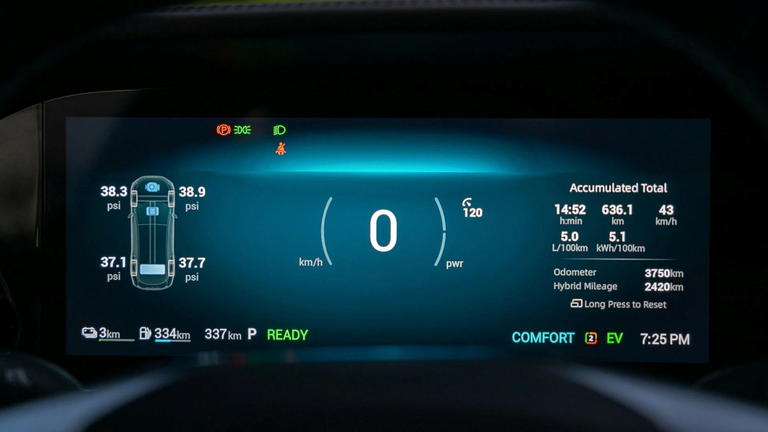 Por otro lado, y siendo otro gran reclamo para quienes recorren grandes distancias diarias, el consumo medio declarado es de 3,32 l/100 km, mientras que la autonomía total alcanza los 1.655 kilómetros gracias a un depósito de 55 litros. En cuanto a la recarga, admite potencias de hasta 28 kW, lo que le permite pasar del 30 al 80% en apenas 28 minutos en condiciones óptimas.
