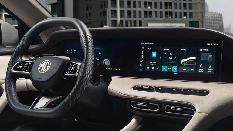 En el apartado mecánico, que es lo que hace interesante al MG 8 PHEV, tenemos un sistema híbrido enchufable basado en un motor 1.5 combinado con un sistema eléctrico, para entregar una potencia conjunta de 204 CV y 330 Nm de par. Se trata de una versión descafeinada del que hemos visto aquí en los HS y S9. Con estas cifras, es capaz de acelerar de 0 a 100 km/h en unos 7 segundos mientras que, gracias a una batería de 21,4 kWh de capacidad, puede homologar una autonomía eléctrica de hasta 125 kilómetros