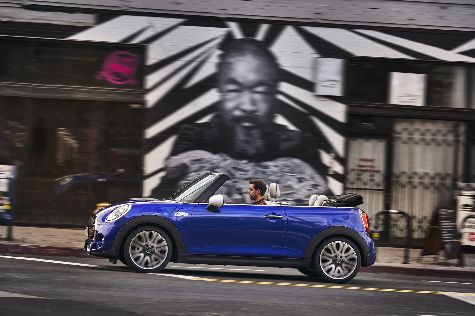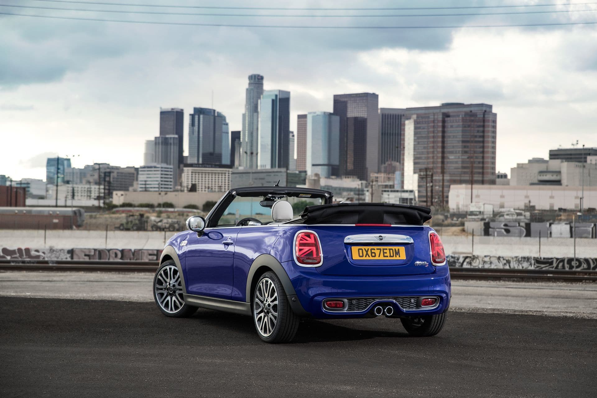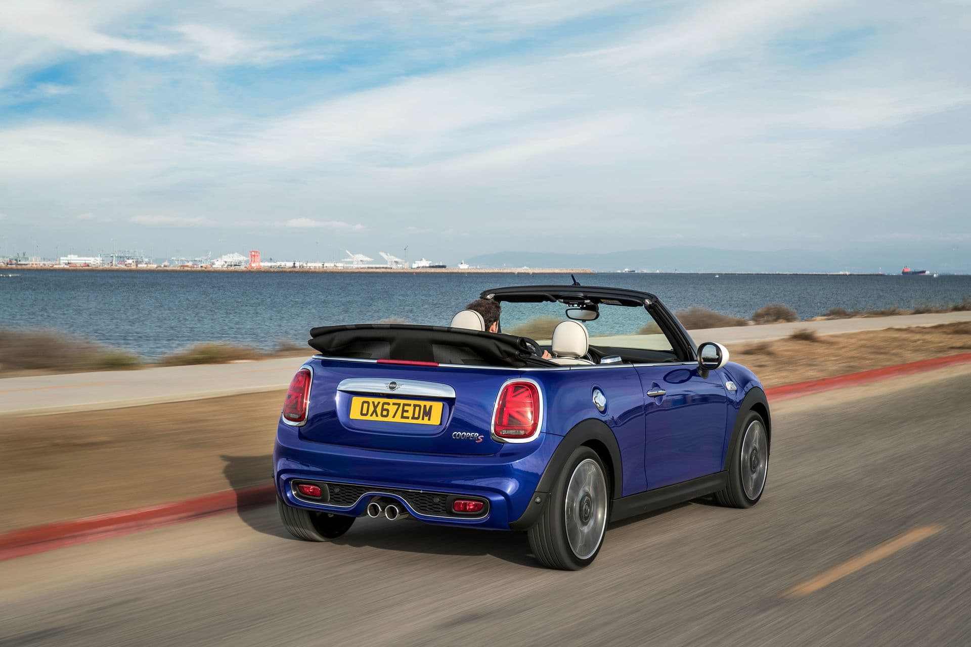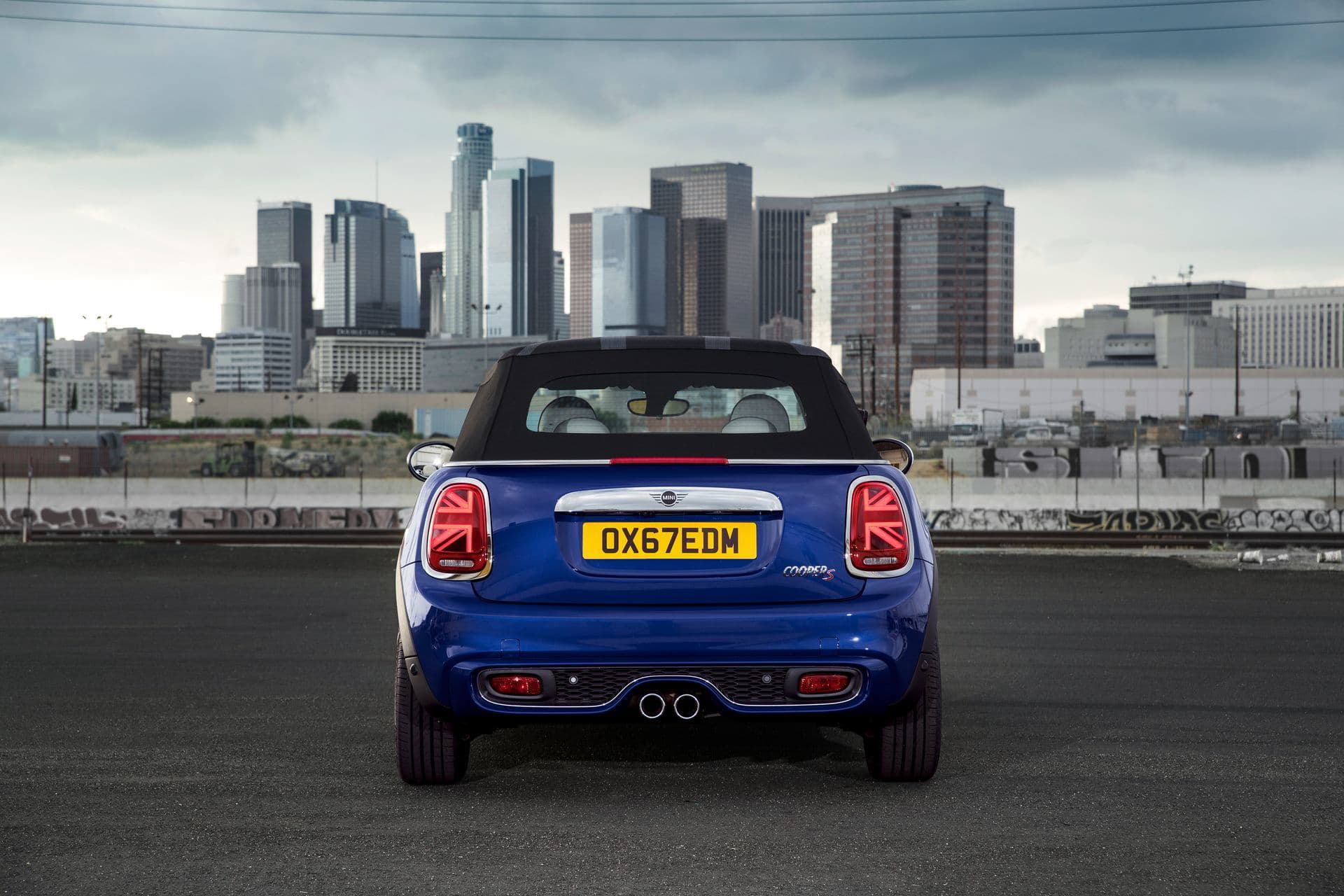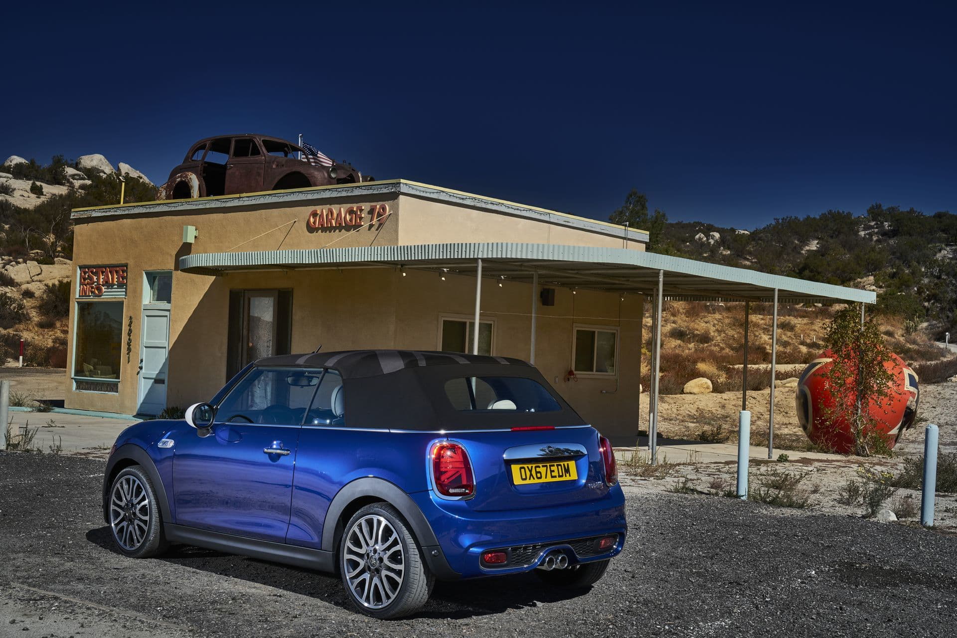 La iluminación diurna sigue siendo cortesía de un aro LED, que rodea la circunferencia de las ópticas al completo. El logotipo de MINI que preside el frontal y las aletas delanteras también ha sido ligeramente modificado – según la marca, ahora es más bidimensional y representa mejor sus valores: la diversión, el diseño, la emoción y la calidad premium. Se estrenan tres nuevas tonalidades para la pintura de estos MINI, llamadas Emerald Grey metalizado, Starlight Blue metalizado – el MINI Cabrio que preside este artículo está pintado en dicho color – y Solaris Orange metalizado.
