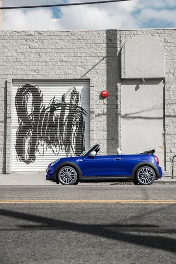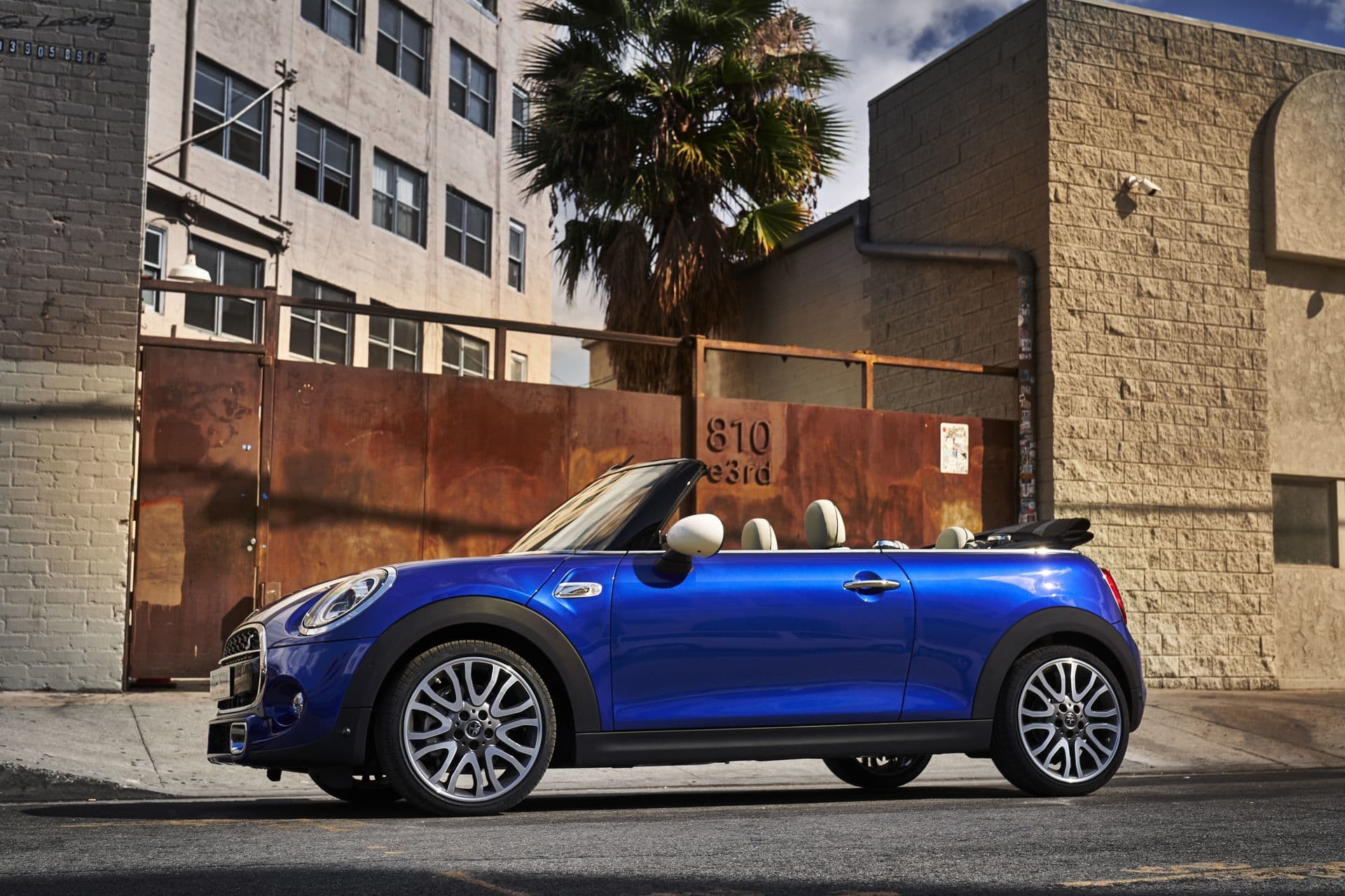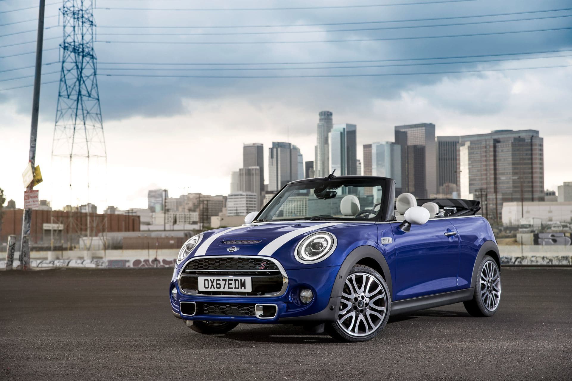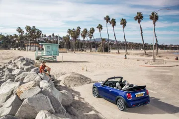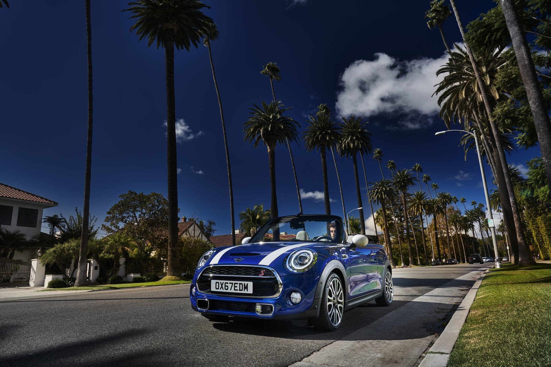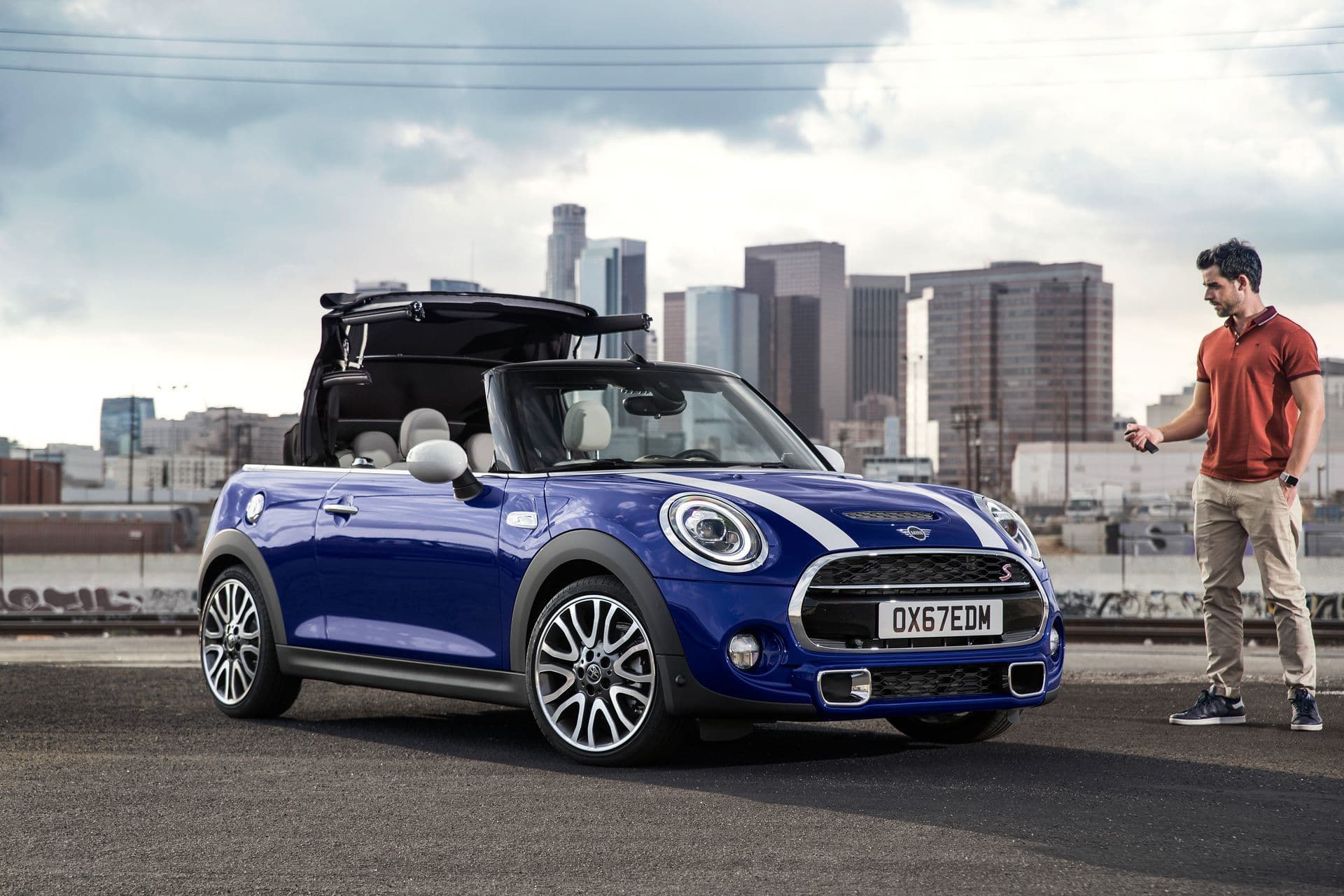 La iluminación diurna sigue siendo cortesía de un aro LED, que rodea la circunferencia de las ópticas al completo. El logotipo de MINI que preside el frontal y las aletas delanteras también ha sido ligeramente modificado – según la marca, ahora es más bidimensional y representa mejor sus valores: la diversión, el diseño, la emoción y la calidad premium. Se estrenan tres nuevas tonalidades para la pintura de estos MINI, llamadas Emerald Grey metalizado, Starlight Blue metalizado – el MINI Cabrio que preside este artículo está pintado en dicho color – y Solaris Orange metalizado.