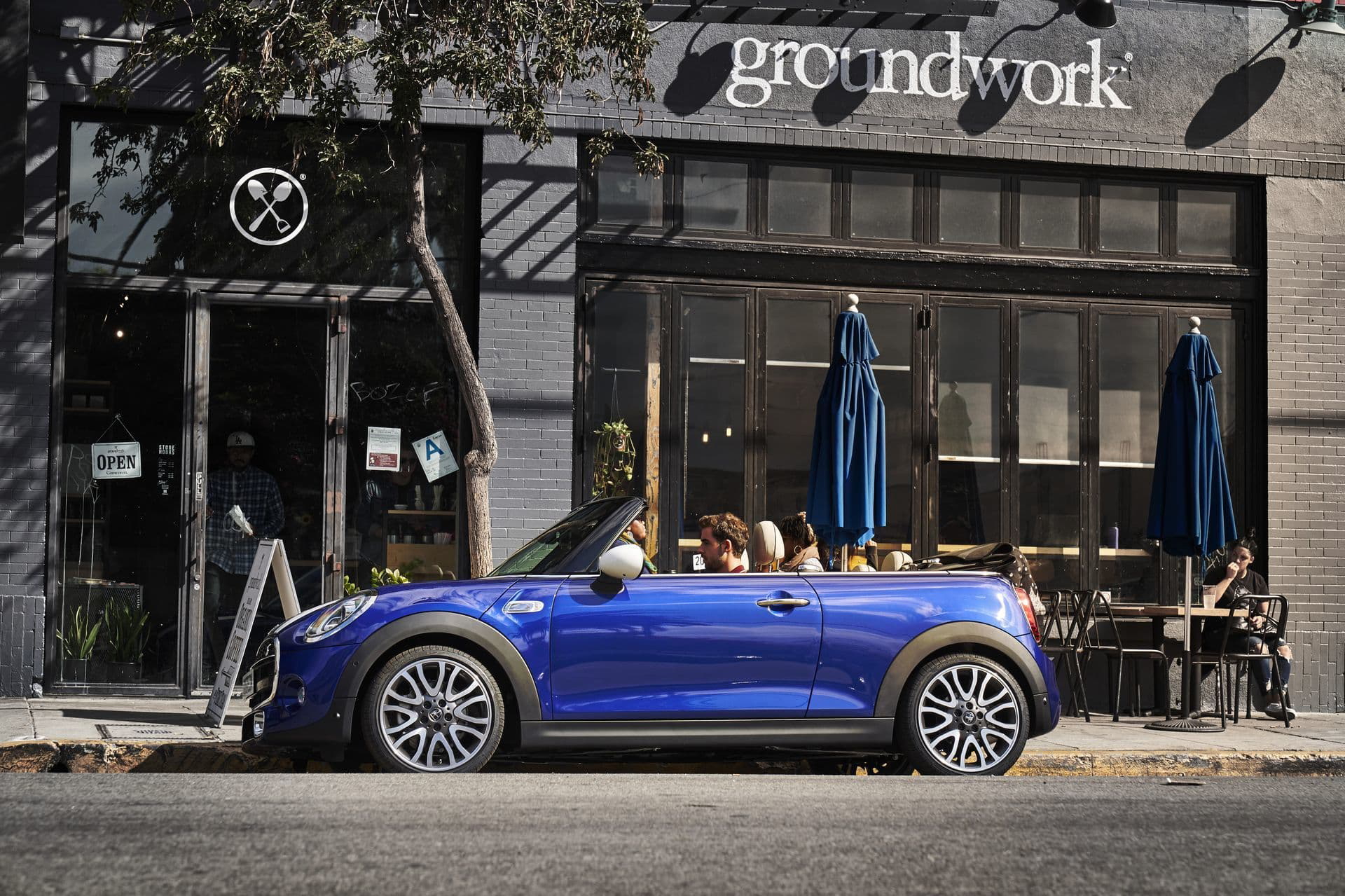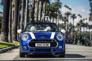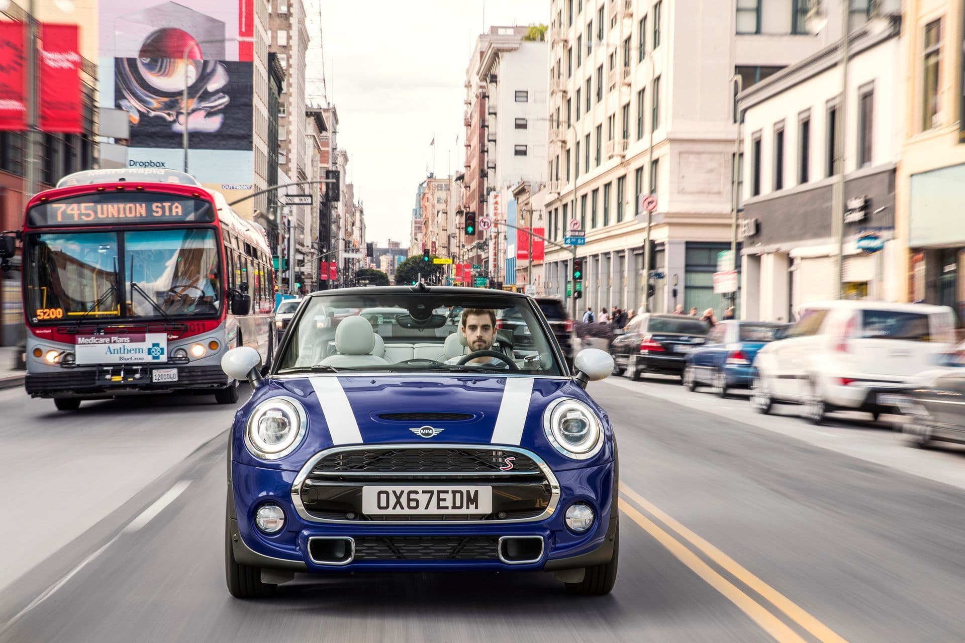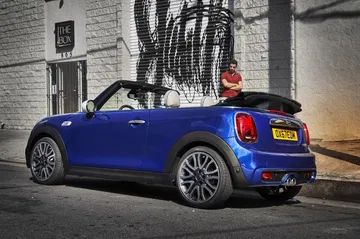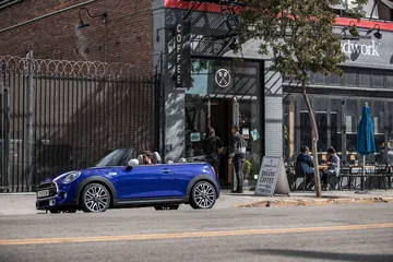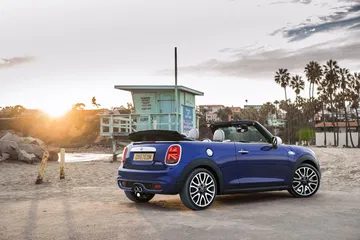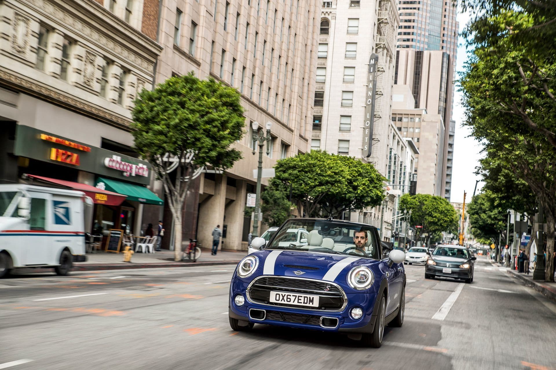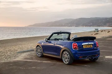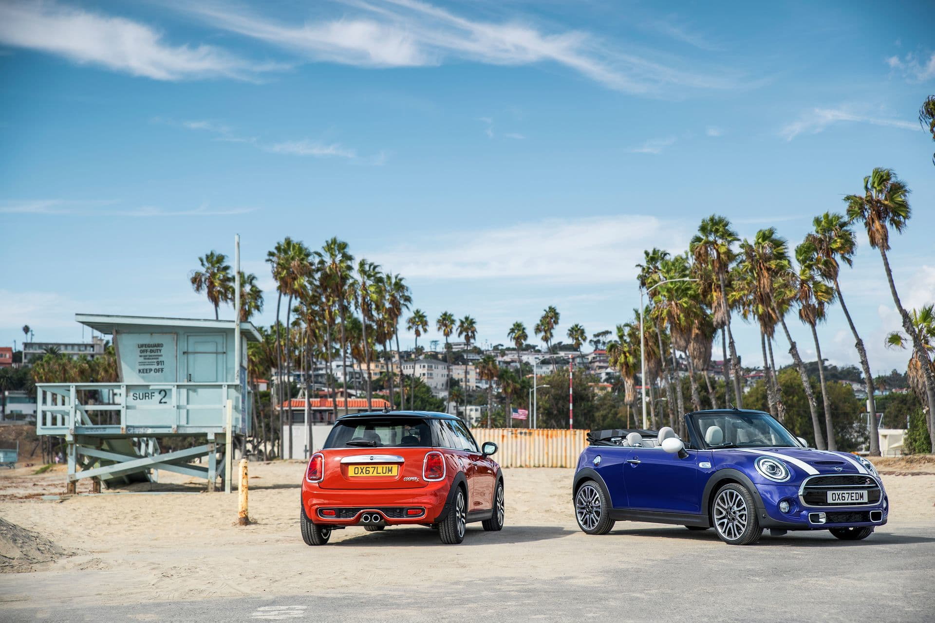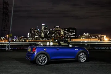 La iluminación diurna sigue siendo cortesía de un aro LED, que rodea la circunferencia de las ópticas al completo. El logotipo de MINI que preside el frontal y las aletas delanteras también ha sido ligeramente modificado – según la marca, ahora es más bidimensional y representa mejor sus valores: la diversión, el diseño, la emoción y la calidad premium. Se estrenan tres nuevas tonalidades para la pintura de estos MINI, llamadas Emerald Grey metalizado, Starlight Blue metalizado – el MINI Cabrio que preside este artículo está pintado en dicho color – y Solaris Orange metalizado.