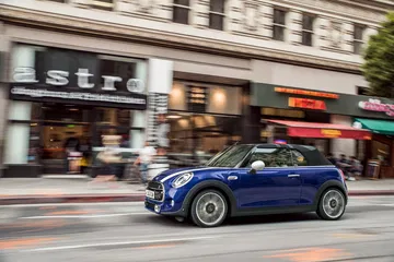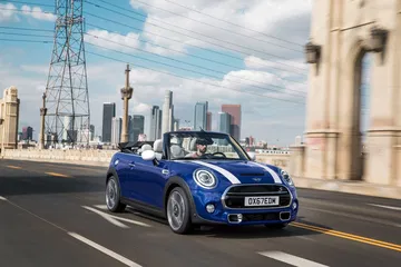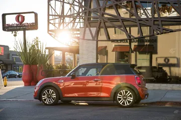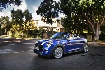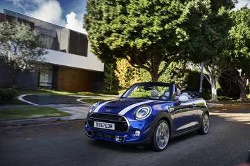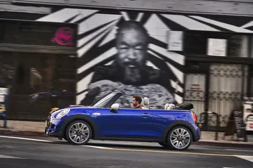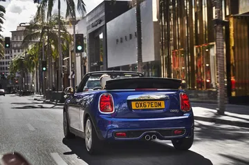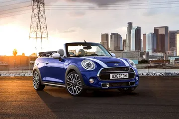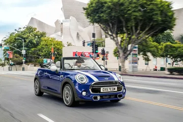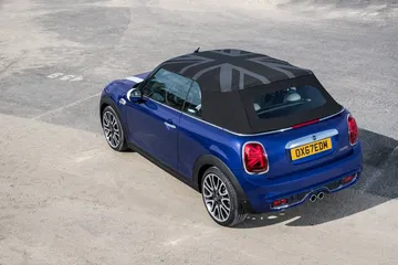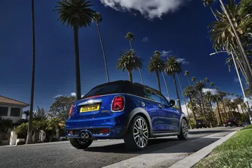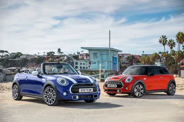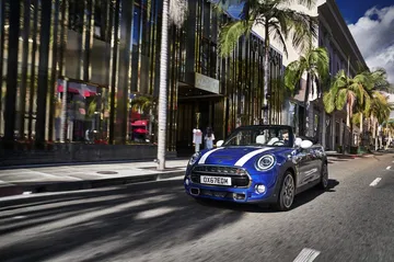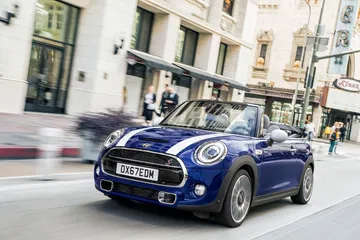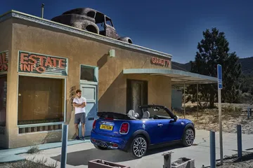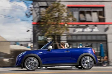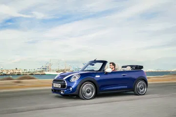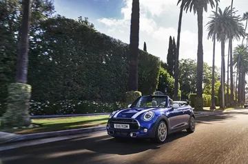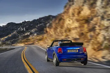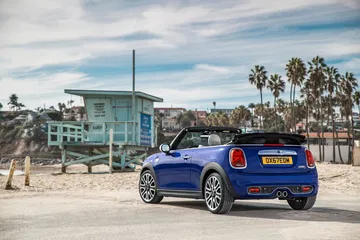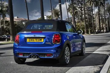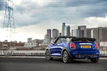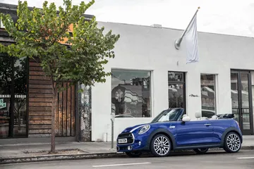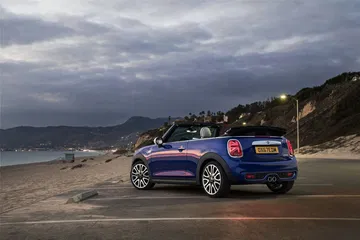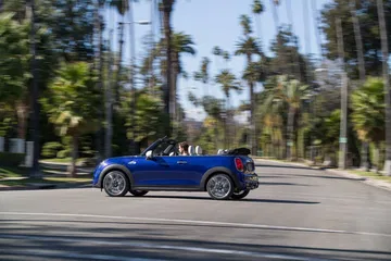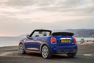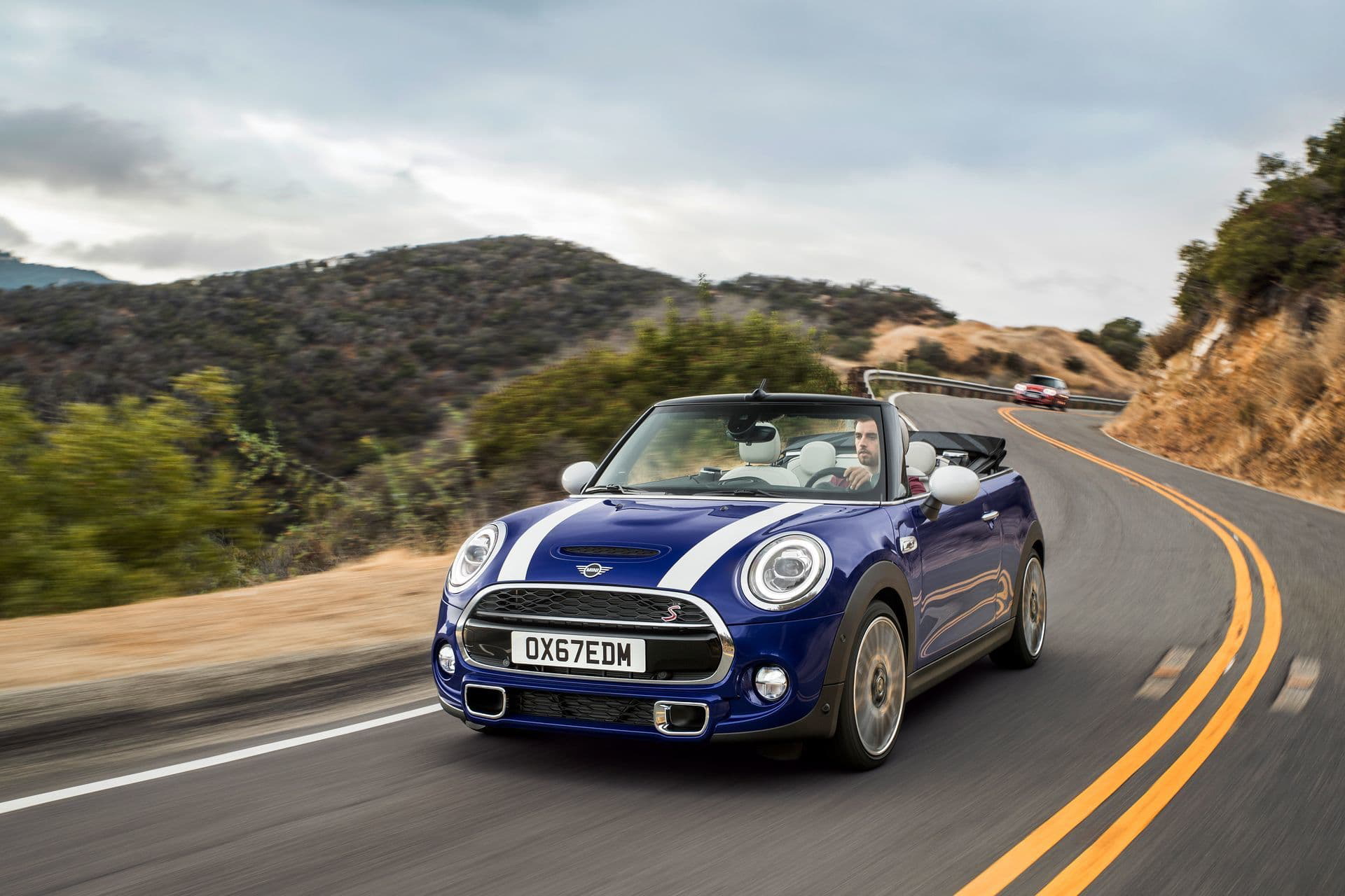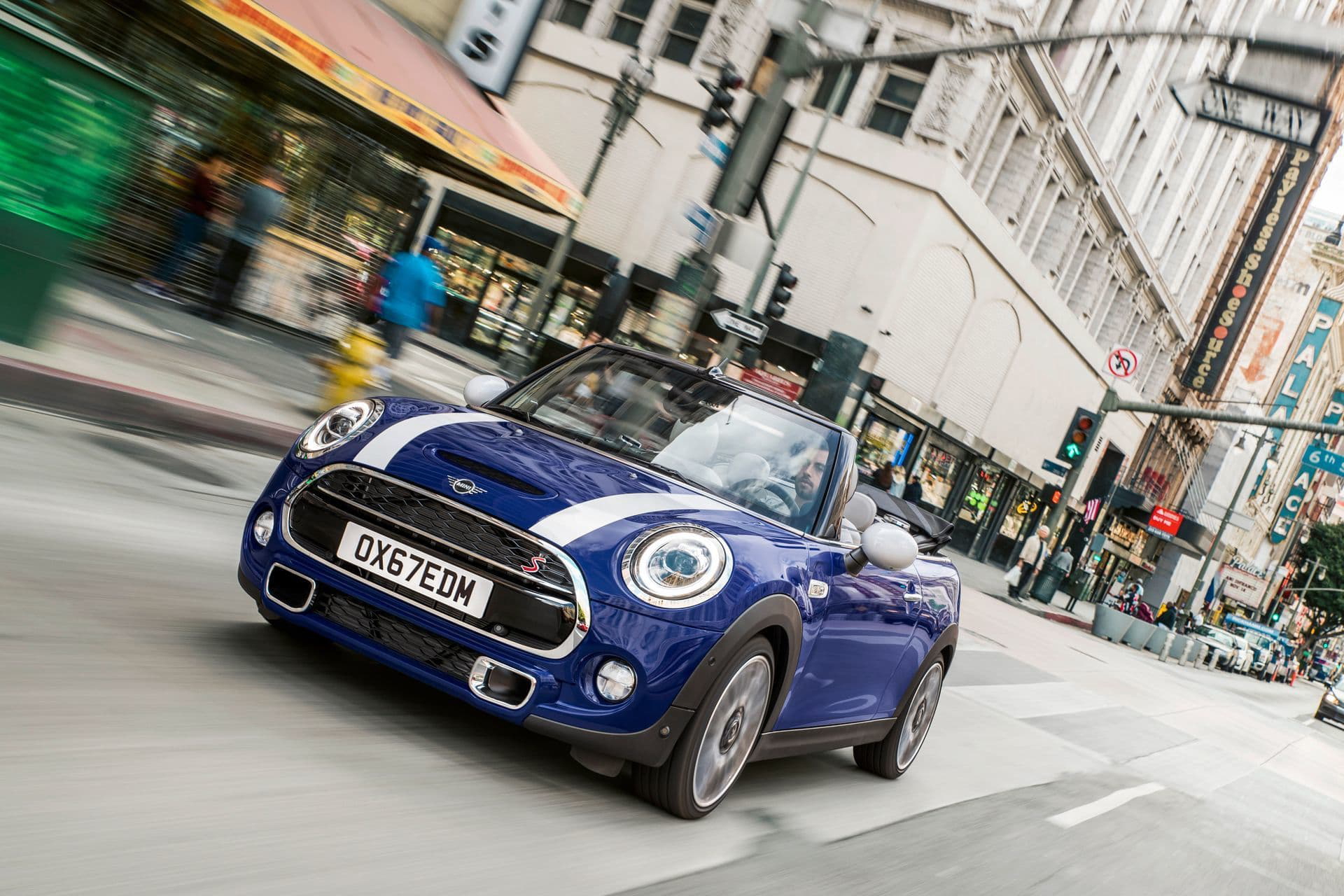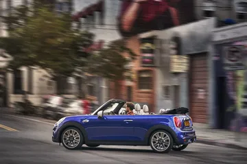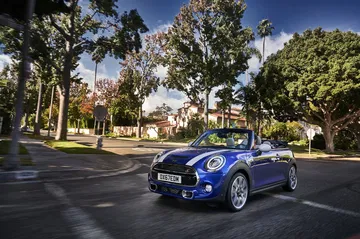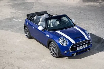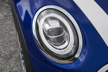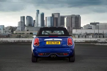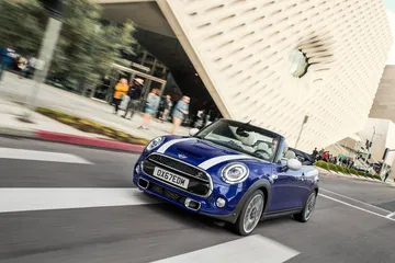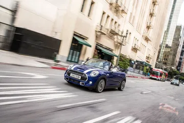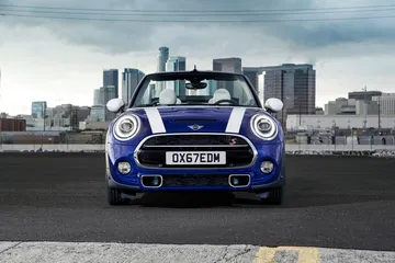 La iluminación diurna sigue siendo cortesía de un aro LED, que rodea la circunferencia de las ópticas al completo. El logotipo de MINI que preside el frontal y las aletas delanteras también ha sido ligeramente modificado – según la marca, ahora es más bidimensional y representa mejor sus valores: la diversión, el diseño, la emoción y la calidad premium. Se estrenan tres nuevas tonalidades para la pintura de estos MINI, llamadas Emerald Grey metalizado, Starlight Blue metalizado – el MINI Cabrio que preside este artículo está pintado en dicho color – y Solaris Orange metalizado.
