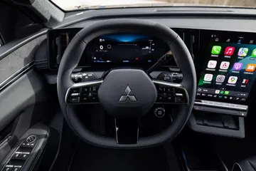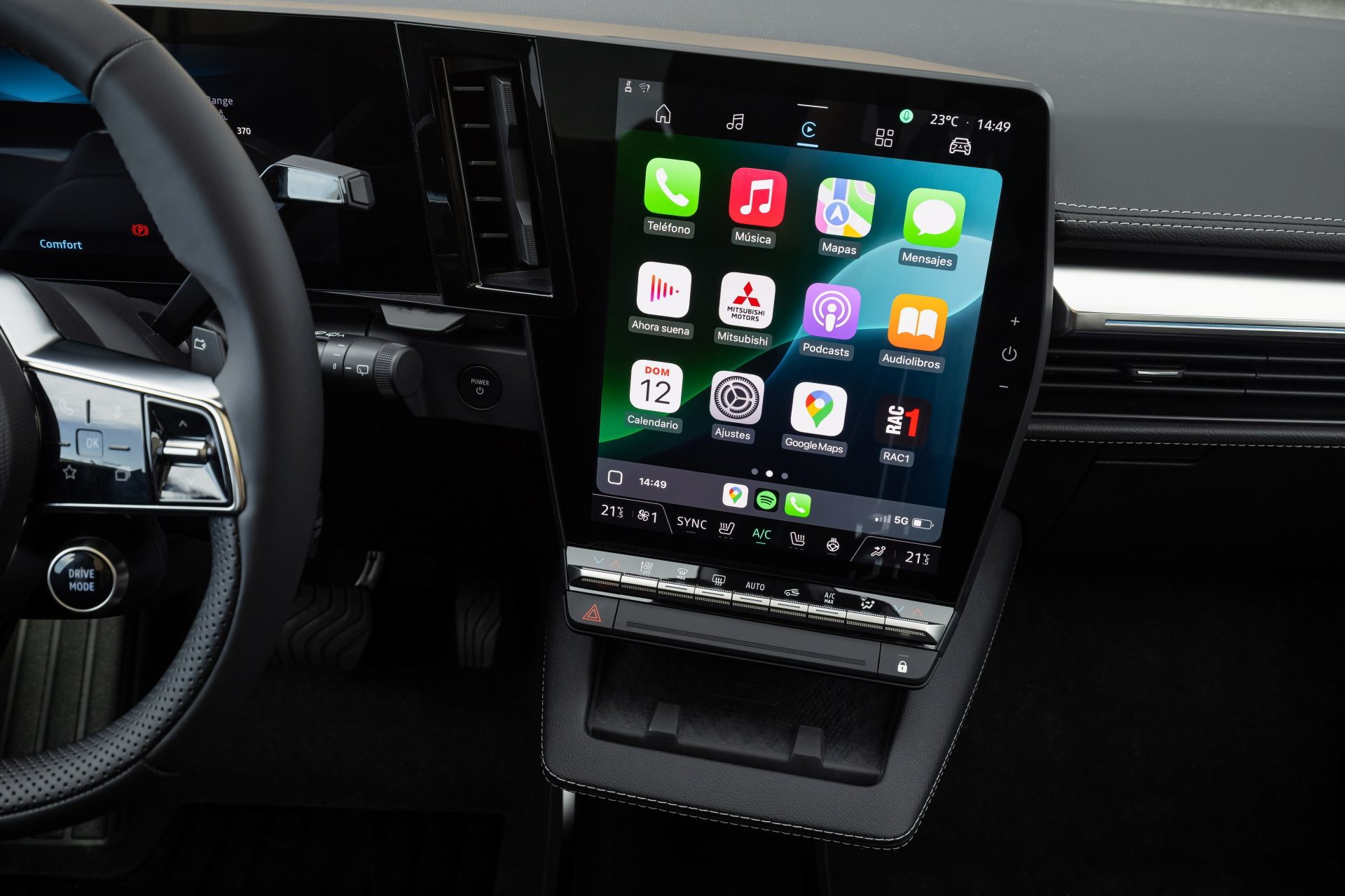 En el interior, por su parte, los cambios son prácticamente nulos a excepción de todo lo que tiene que ver con el branding de la firma japonesa. En el volante encontramos el logo de Mitsubishi mientras que al subirnos a bordo la pantalla central nos recibe mostrándolo, también.