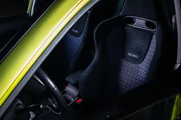 Por dentro, el Evo conserva su personalidad de la época, con asientos Recaro de fábrica (aunque más adelante llegó a montar los del Evo VIII) y una instrumentación adicional formada por un cuentavueltas Apexi, un medidor de presión del turbo y un medidor de temperatura.