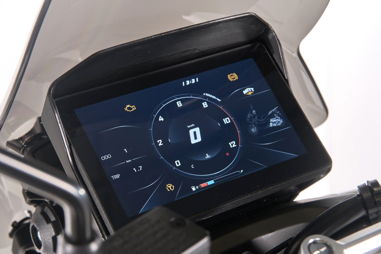 Otros elementos de serie son una completa instrumentación digital con función Mirror Link, siete pulgadas de tamaño y dos opciones de configuración, hueco bajo el asiento para guardar un casco, toma USB, caballete central y lateral, sistema de llave inteligente, estriberas abatibles, control de tracción TCS desconectable, faros antiniebla y defensas protectoras.