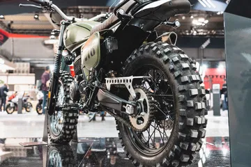 Sus llantas de radio de alambre sirven para absorber mejor los impactos sin quebrarse. Quedan vestidas por unos neumáticos de tacos de 19″ delante y 16″ detrás.