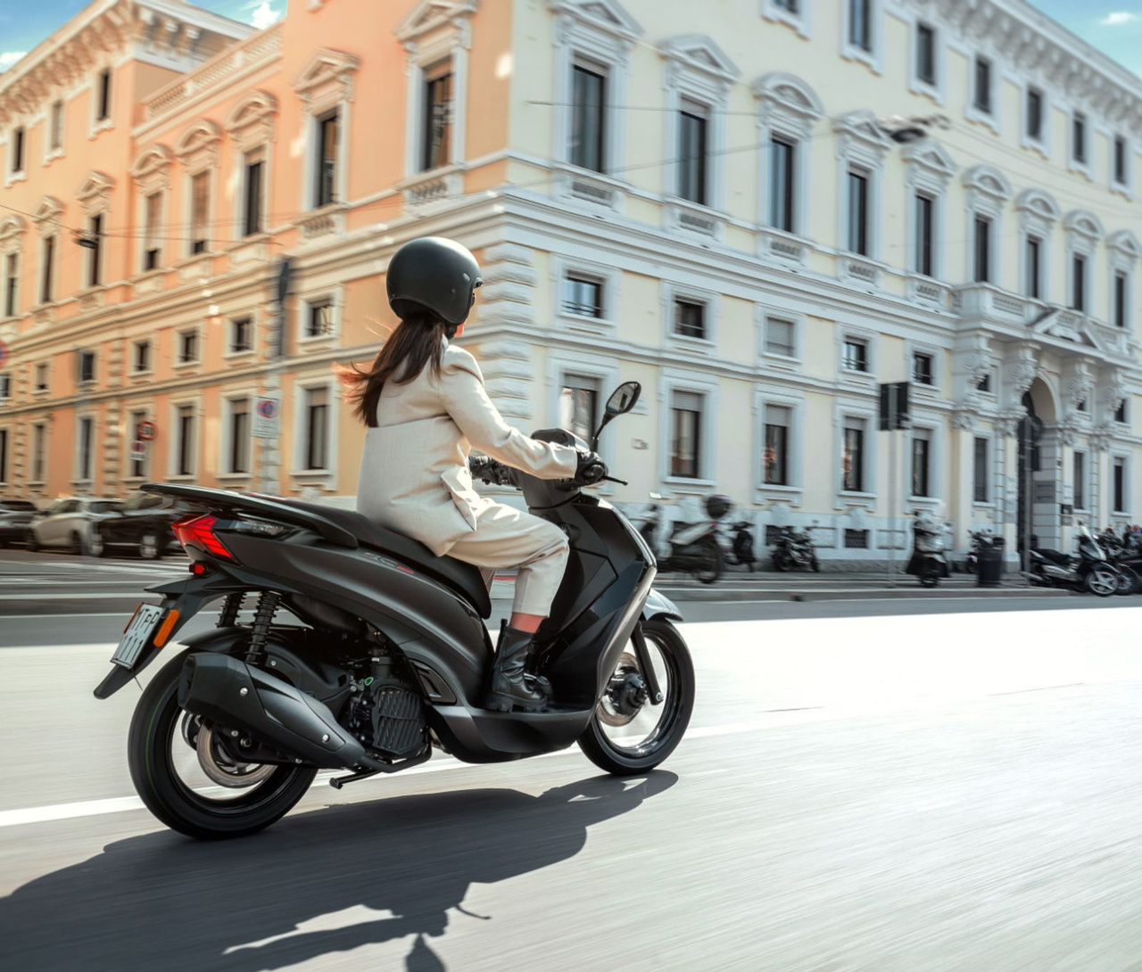 El equipamiento de serie se completa con una instrumentación con pantalla LCD, estriberas para el acompañante abatibles, pata lateral, caballete central, sistema de llave inteligente, hueco para guardar dos cascos bajo el asiento, asideros traseros, guantera tras el escudo con llave, toma USB, pequeños detalles cromados, etc.