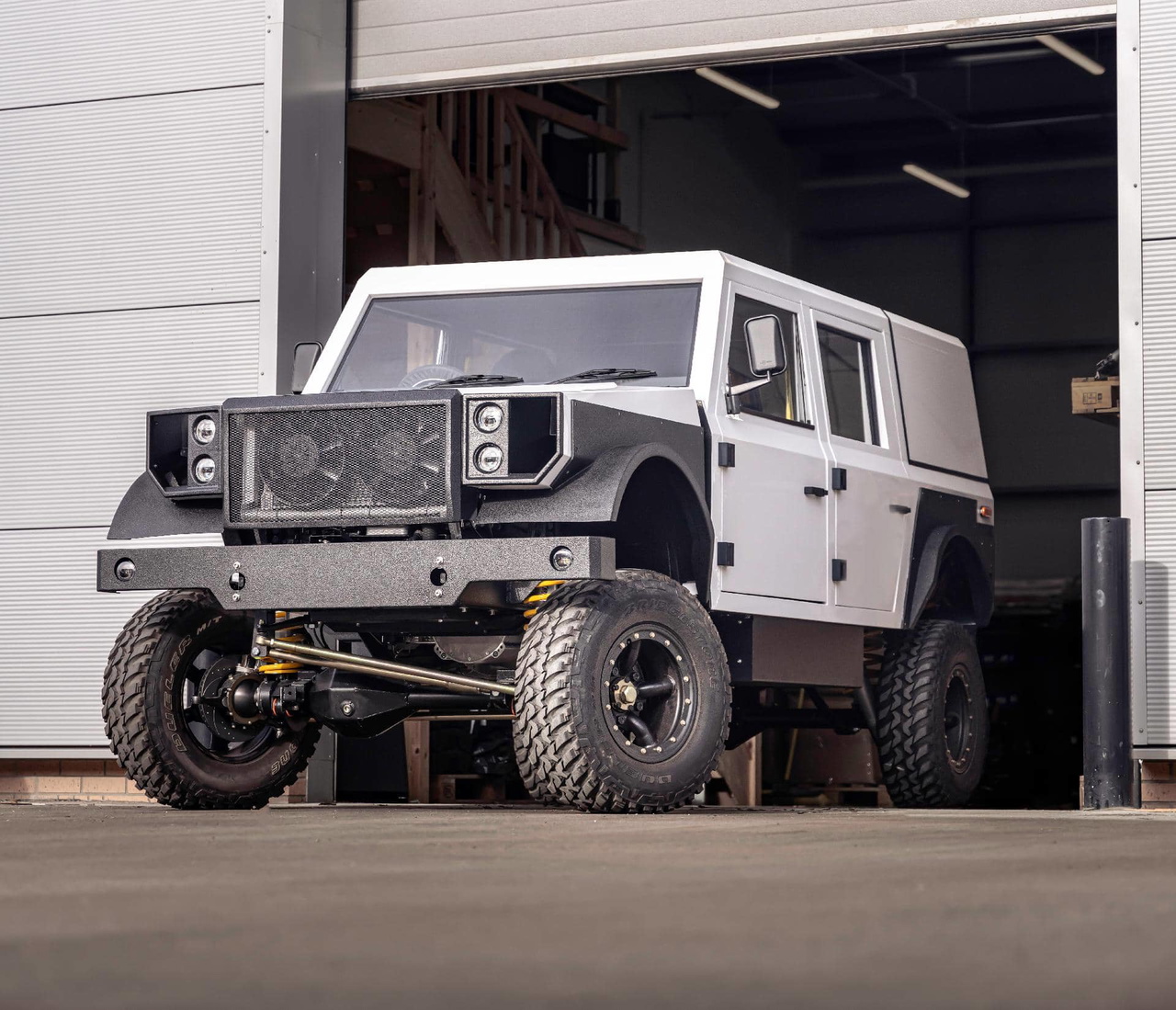 La clave de este todoterreno, que es eléctrico, y que se ofrecerá en «dos sabores», con 231 CV de potencia y 2.250 kilogramos de capacidad de arrastre y 381 CV y 3.500 kilogramos de arrastre, así como configuraciones de cabina cerrada, camioneta tipo pick-up, y camina sencilla sin completar el carrozado para otras aplicaciones, reside sobre todo en sus cotas.